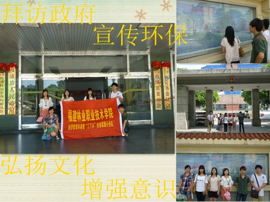 2012年7月5日—7月7日福建林业职业技术学院经济管理系暑期“三下乡”社会实践小分队一行7人赴福建宁德霞浦开展“保护海洋环境,促进经济可持续发展”社会实践活动。在当地工作人员的带领下,我们先后参观了大京海域、高罗海域,同时,拜访了当地政府及企业,并对岛上的居民、游客、导游等进行了问卷调查,了解海洋的主要环境问题以及保护海洋环境的主要措施,此外,通过发放《海洋环境保护》宣传单,向居民、游客等传达可持续发展的观念,希望能够使海洋环境保护变成广大人民群众的自觉行动,使我们的大海变的更蓝,更美。
