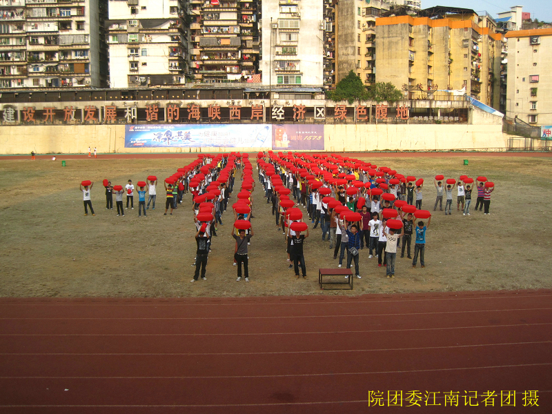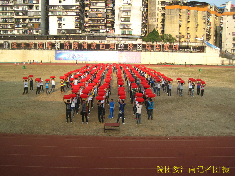 10月16日下午3点30分,由我院江南校区2012级320名学生参演的南平市第二届运动会开幕式团体操《序——双剑化龙》及天麟校区480名学生参演的《春》的表演在南平市运动场进行了第一次实地彩排。