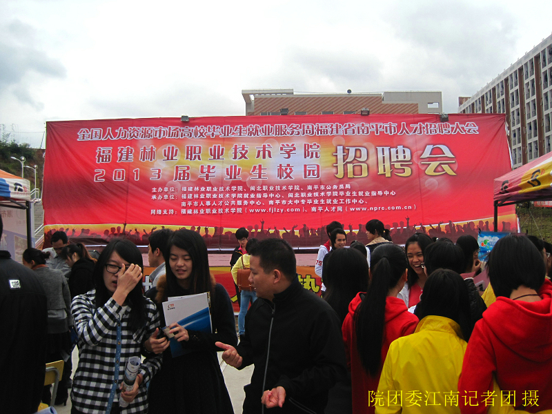11月17号上午9点整,由福建林业职业技术学院,闽北职业技术学院和南平市公务员局主办;福建林业职业技术学院就业指导中心,闽北职业技术学院毕业生就业指导中心以及南平市人事人才公共服务中心,南平市大专毕业生就业工作中心共同承办的“2013届毕业生校园招聘会”在我院江南校区篮球场隆重举行。