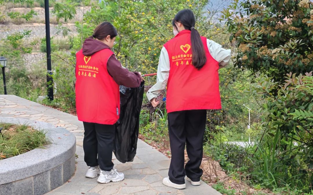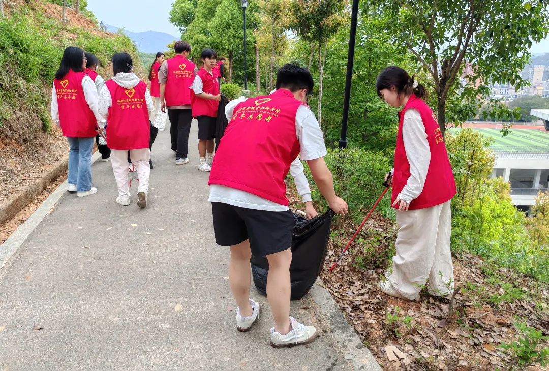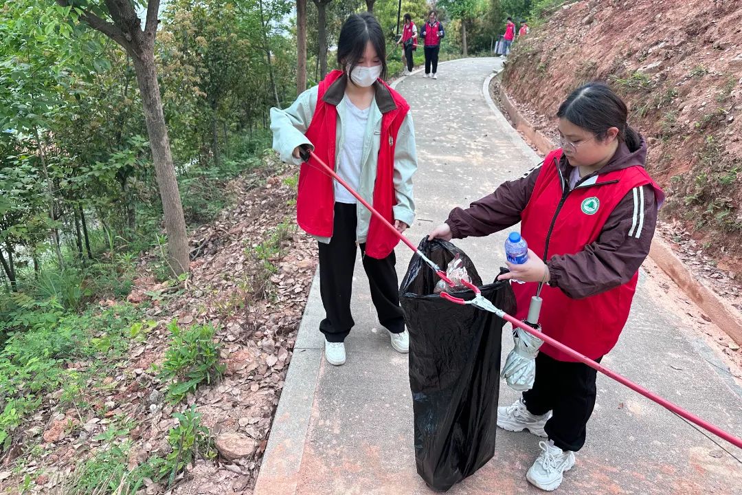 理论讲解结束后,31名志愿者迅速分组行动,手持垃圾袋和清扫工具,沿着后山小径展开垃圾清扫工作。他们深入草丛树林,仔细搜寻,将烟头、塑料包装等易燃垃圾逐一清理。清扫过程中,志愿者们还不忘向过往同学宣传森林防火知识,提醒大家不在山林乱扔垃圾使用明火,将防火意识传递给更多人。