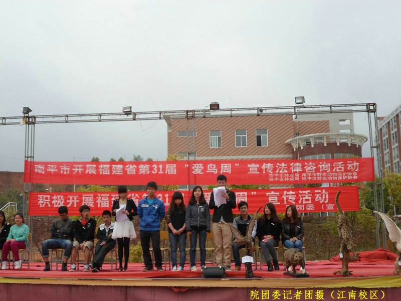 阳春三月,鸟语花香,3月31日上午9点整,福建省第三十一届“爱鸟周”活动在我院江南校区篮球场举行。本次活动由共青团福建林业职业技术学院委员会、南平市延平区林业局主办,院社团部、院组织部和绿色环保协会承办。