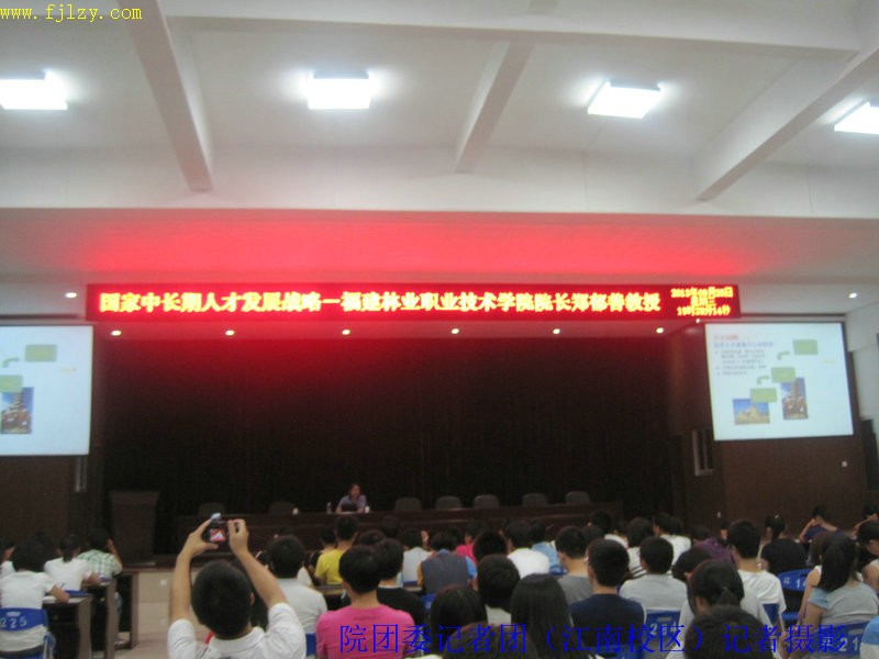 2013年9月25日晚7时,院长郑郁善教授在江南校区四楼会议厅开展《国家中长期人才发展战略》讲座,江南校区本科班学生和学生干部近400人到场聆听,讲座由资源环境系主任黄勤坚主持。