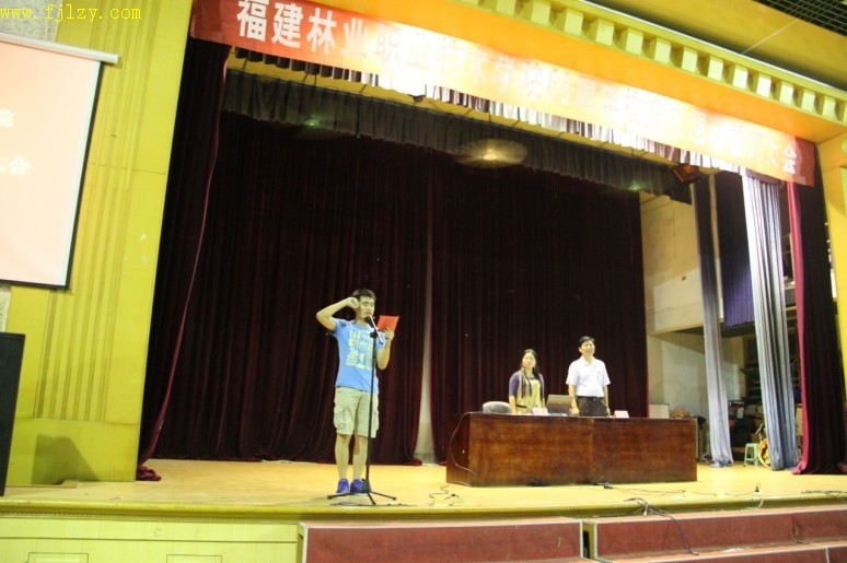 来自经济管理系的林财强同学作为志愿者代表发言,并代表60周年校庆志愿者接过了志愿者队伍的旗帜。志愿者曾斯玮同学带领全体志愿者庄严宣誓:“我志愿服务福建林业职业技术学院60周年校庆,弘扬志愿服务精神,践行志愿服务理念,团结协作、积极进取、热情服务,珍惜和维护福建林业职业技术学院的声誉,为母校争光,为校庆添彩。让志愿者的优质服务成为这场福建林业职业技术学院最好的名片!” (摄影 陈伟伟)