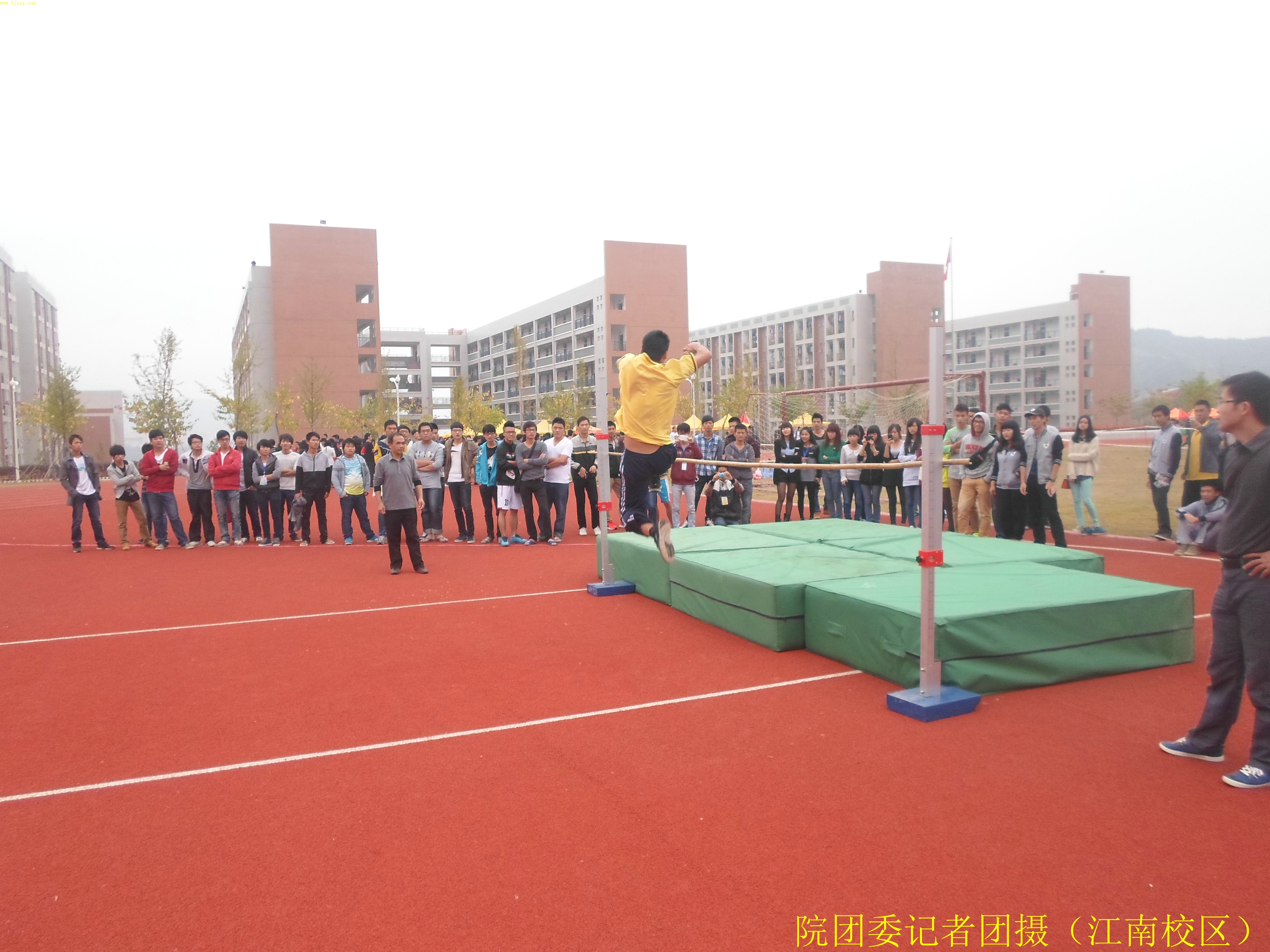 11月7日上午8点30分,男子跳高预决赛在我院江南校区田径场举行。共有46位同学积极参加比赛