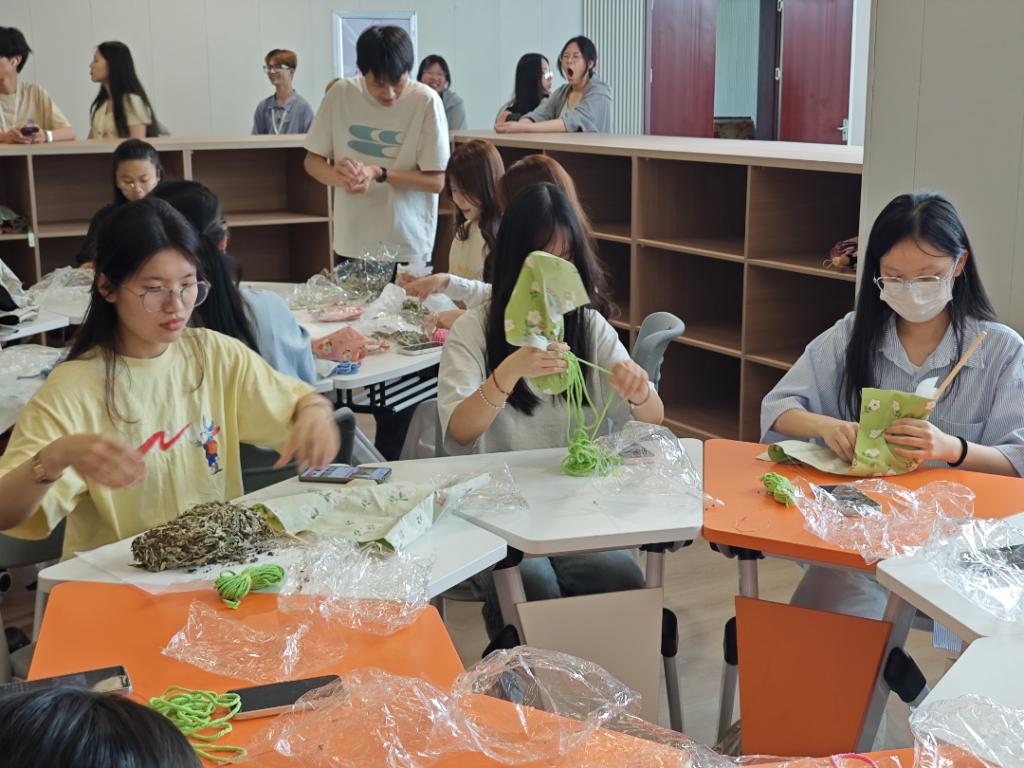当麻绳在指尖缓缓缠绕,浓郁的艾草清香便顺着呼吸沁入心底。这一刻,时间仿佛悄然停驻,千年中医智慧穿越岁月长河,以如此温柔而亲近的方式与我们相遇。这场艾草锤手作活动,恰似一剂舒缓身心的良方,让忙碌的校园节奏在此刻悄然放缓,给予每一位参与者一场治愈心灵的文化之旅。