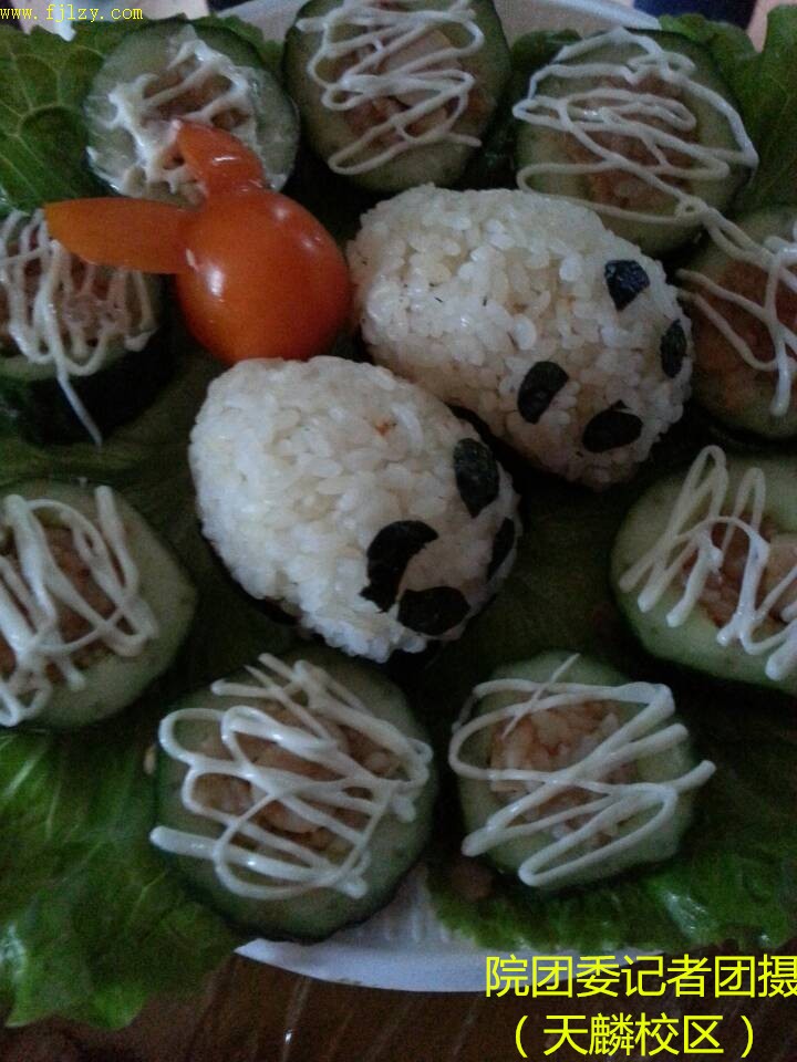 为了让同学们在学习中得到适当放松,培养同学们的动手操作能力、创新能力以及团队合作能力。11月26号下午3点,由营养健康协会承办的第八届水果拼盘初赛寿司比赛在礼堂进行。评委由院学生会干部应邀出席并担任,约70人到场参赛。