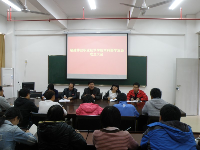 2013年11月19日中午,我院本科部第一届学生会成立大会在资源环境系会议室举行。学院分管学生管理工作的刘明书记、学院团委书记李霞老师、资源环境系黄勤坚主任、资源环境系学工组组长姚平生老师、资源环境系团总支书记钱叶会老师等出席大会,本科部学生会全体成员均全部到场参加。会议由钱叶会老师主持。