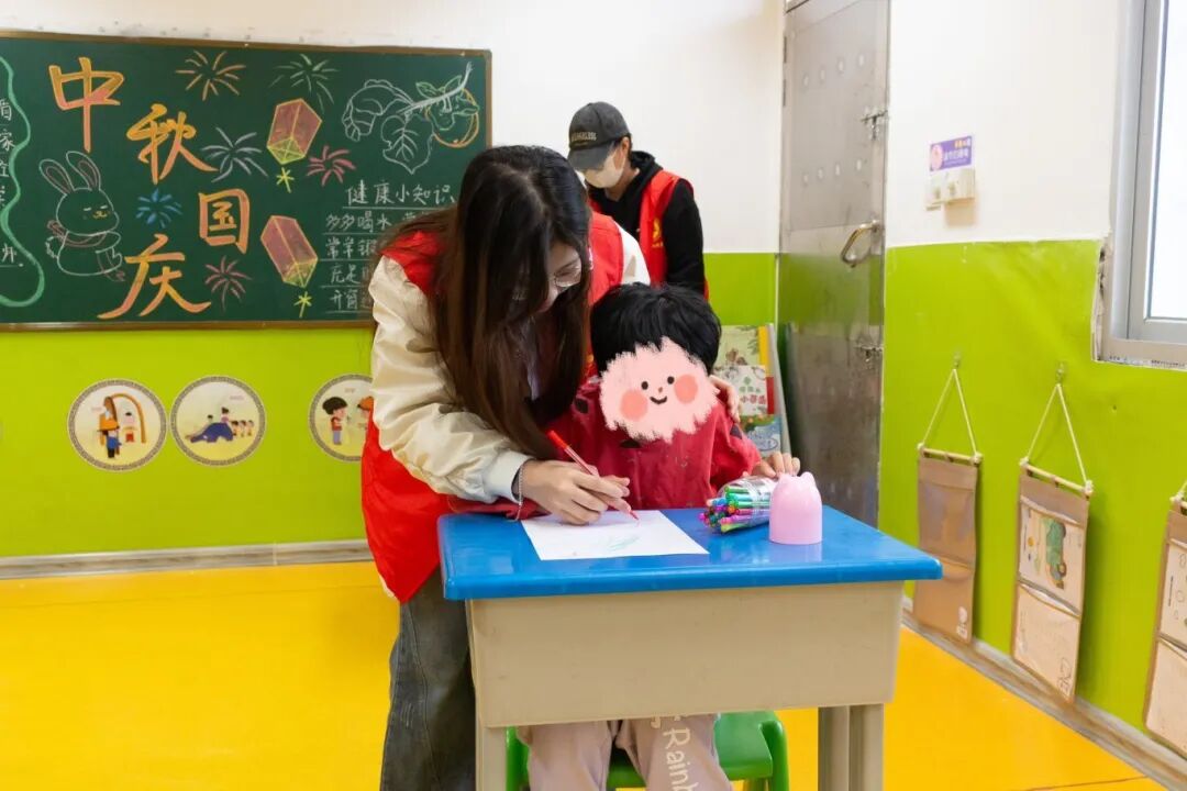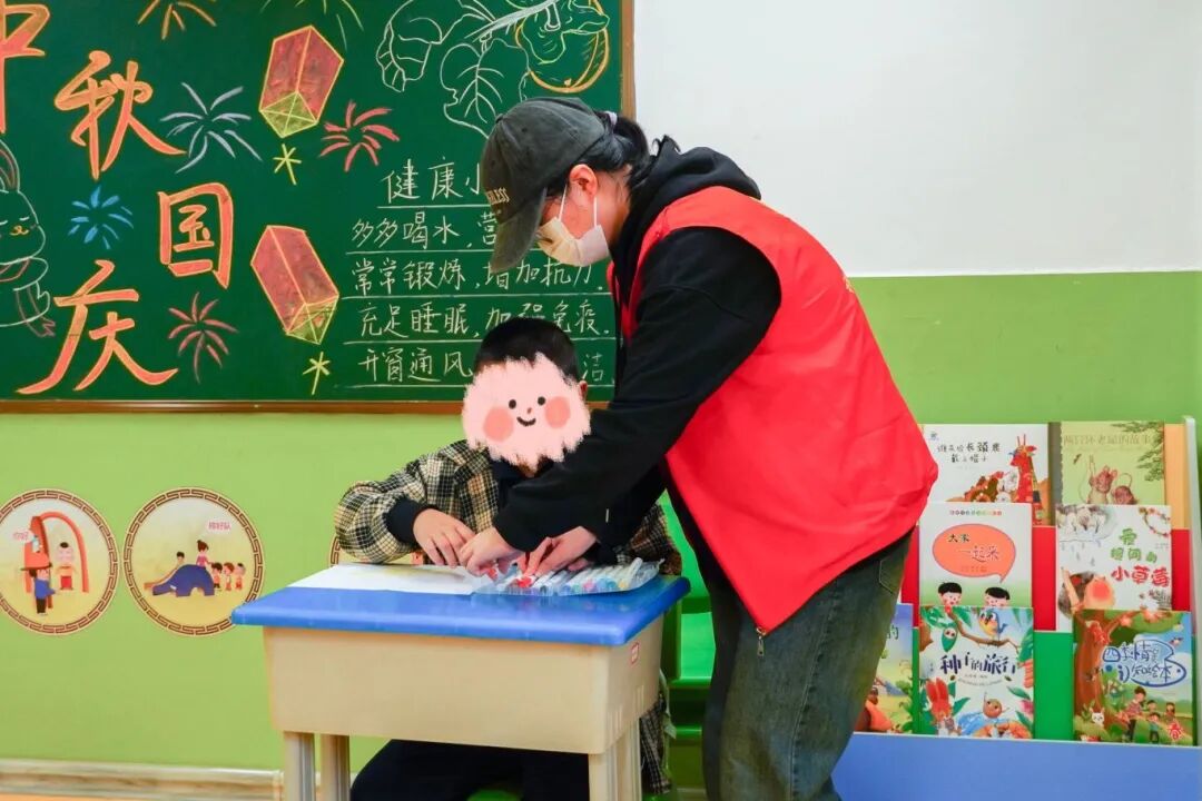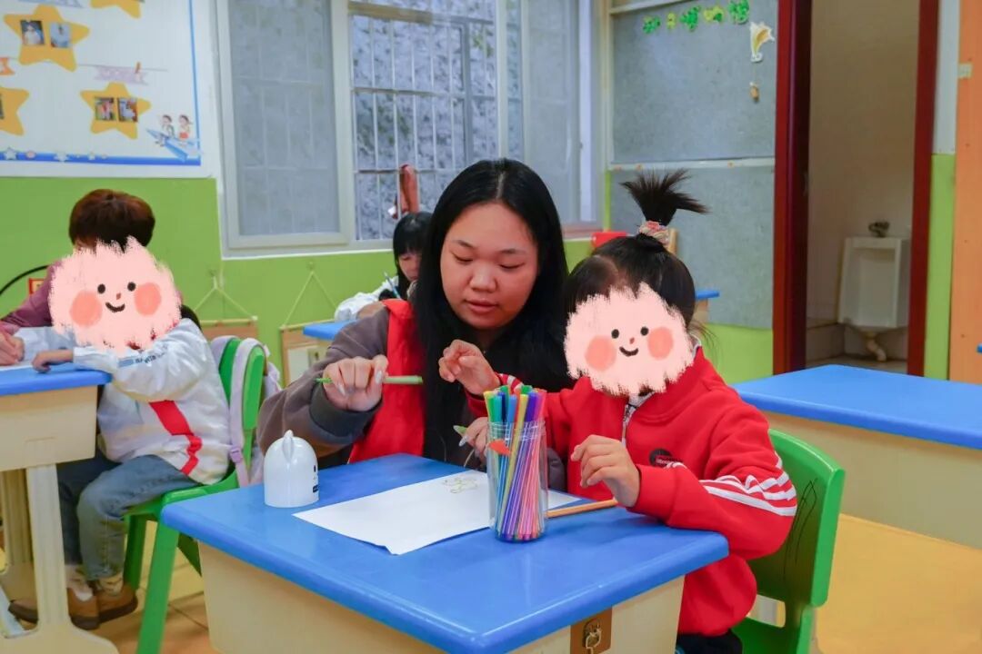 教学过程中,志愿者们各展所长、耐心引导:有的在绘画课上,手把手协助孩子用色彩涂抹想象世界;有的在手工课上,和孩子一起拼接卡纸、折叠彩纸,创造专属小作品;有的在音乐课上,教孩子哼唱简单儿歌;还有的坐在孩子身旁,翻开绘本轻声讲述故事,陪孩子做益智小游戏。每一项活动都以孩子的节奏为基准,用温柔陪伴传递关爱力量。对开智学校的孩子们而言,这一天是艺术启蒙与陪伴滋养;对林职青年来说,这是一次责任与成长的修行——他们带去知识与欢乐,也收获了最纯粹的感动,深刻体会到“一个微笑、一次回应就能让心与心紧紧相依”