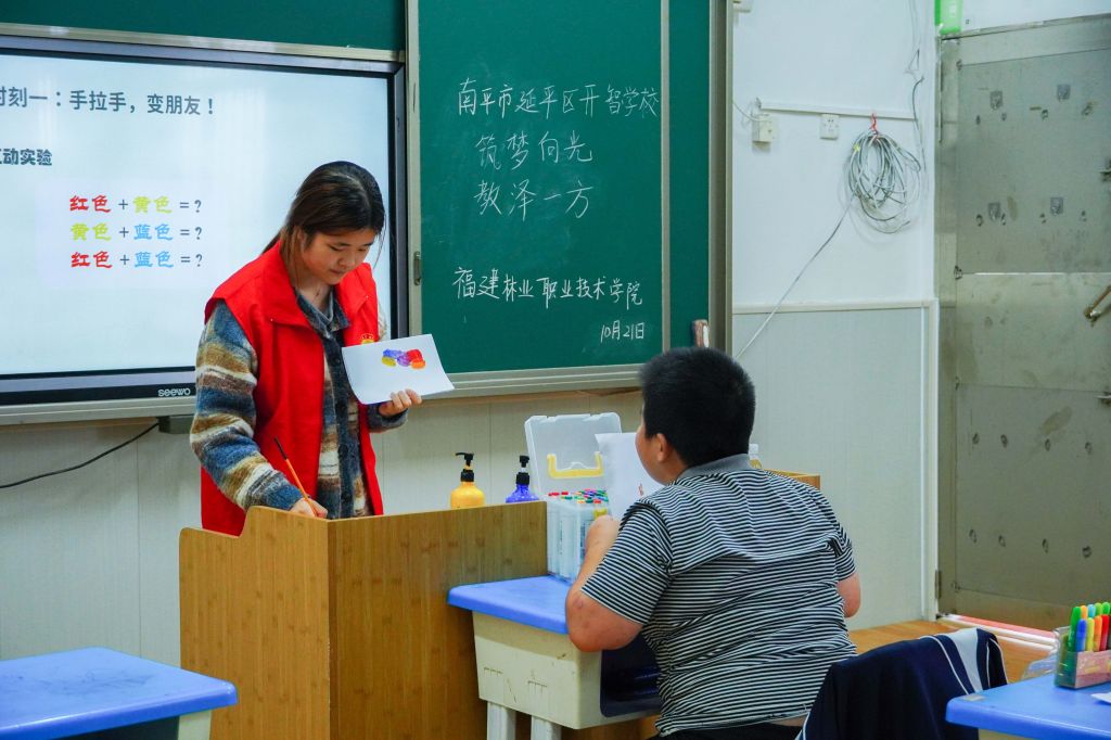 用爱守护星光,以情陪伴成长。关爱特殊儿童是社会文明的温暖注脚,2025年10月21日,福建林业职业技术学院青年志愿者协会组织志愿者前往南平市延平区开智学校,开展支教志愿服务活动,以特色课程与真诚陪伴,为特殊儿童的童年添彩。