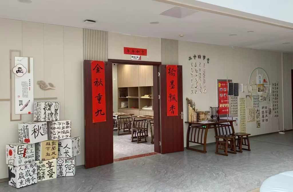 推开门,“金秋重九,翰墨飘香”的红幅便牵起满墙雅韵。