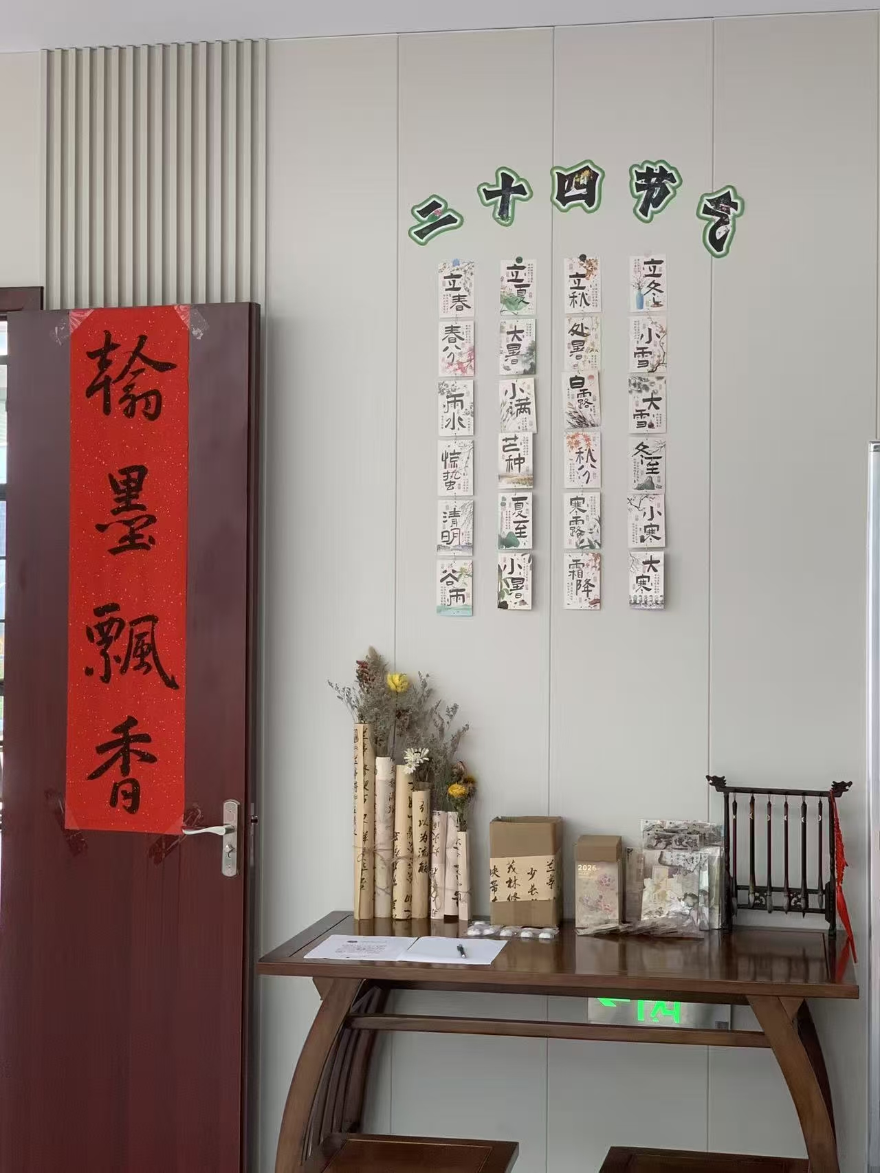 •墙间的节令与情长:二十四节气书画串成青绿的诗,《九月九日忆山东兄弟》的书法里,“遍插茱萸”的思念落满纸笺;菊绘晕开的金黄,恰是登高时撞见的漫山秋华;