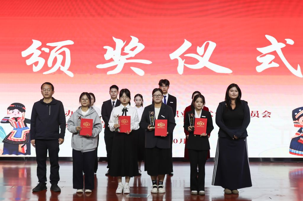 我院洪其双老师和团委王美惠子老师为三位选手颁奖