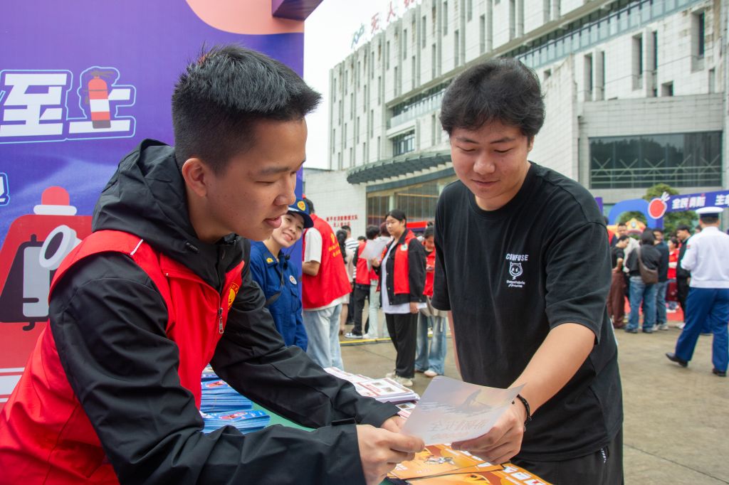 在消防知识科普区,学院学生志愿者安全宣讲团成员化身“消防宣传员”,结合展区图文资料与实物教具,围绕家庭用火用电规范、初期火灾扑救要点、逃生自救核心技巧等内容开展宣讲。宣讲团以“理论阐释+案例剖析”的形式,生动解析电器过载、易燃物存放不当等常见隐患的预防措施,其专业的表达、清晰的逻辑与扎实的知识储备,赢得现场消防员与参观群众的一致认可,成为科普区一道亮眼的青春风景线。