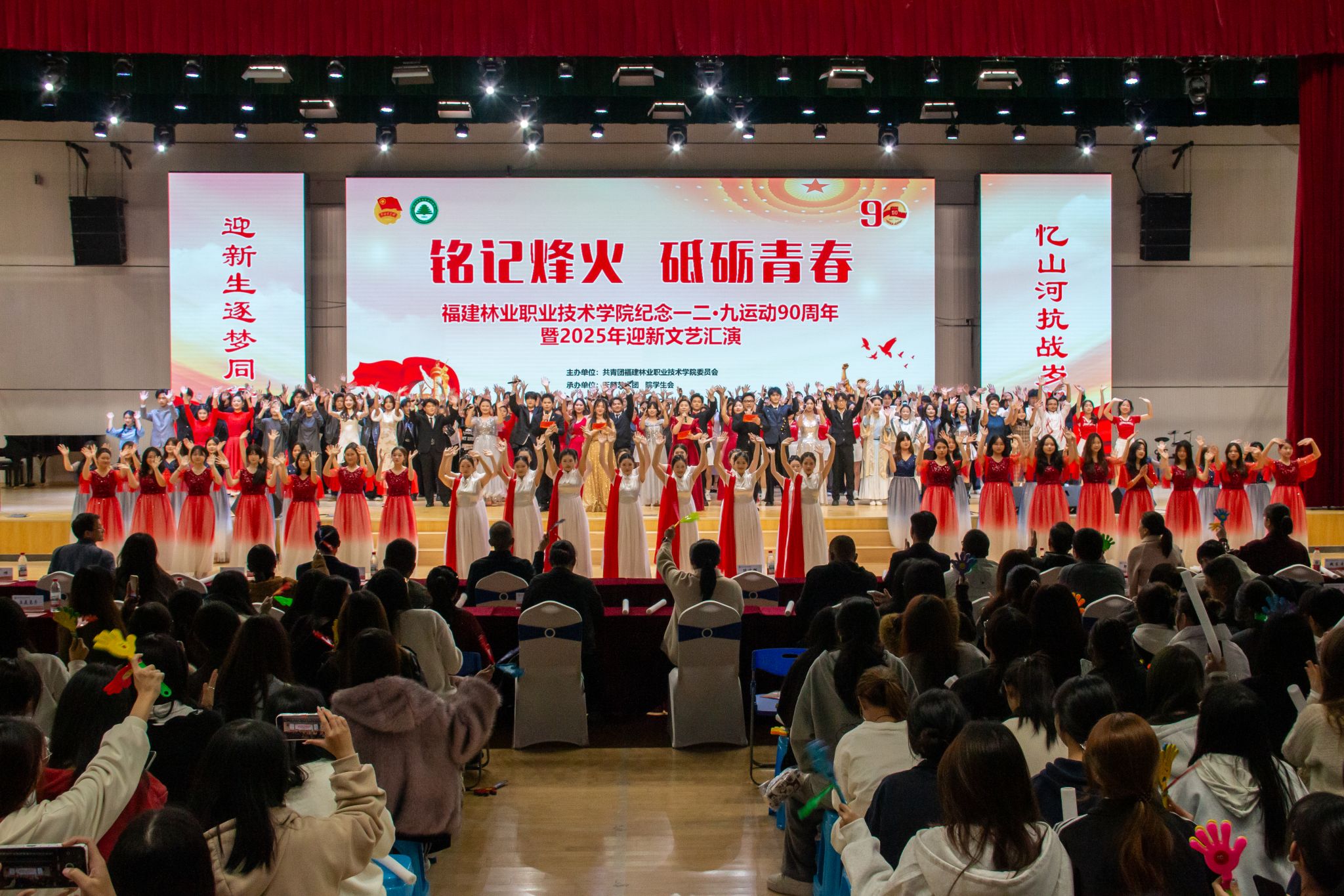 光芒闪耀,青春恰逢盛世;铭记一二九烽火岁月,砥砺奋进写华章。2025年12月9日晚,由共青团福建林业职业技术学院委员会主办,院天麟艺术团、院学生会共同承办铭记烽火 砥砺青春——纪念一二 •九运动90周年暨2025年迎新文艺汇演在江南体育馆举行。