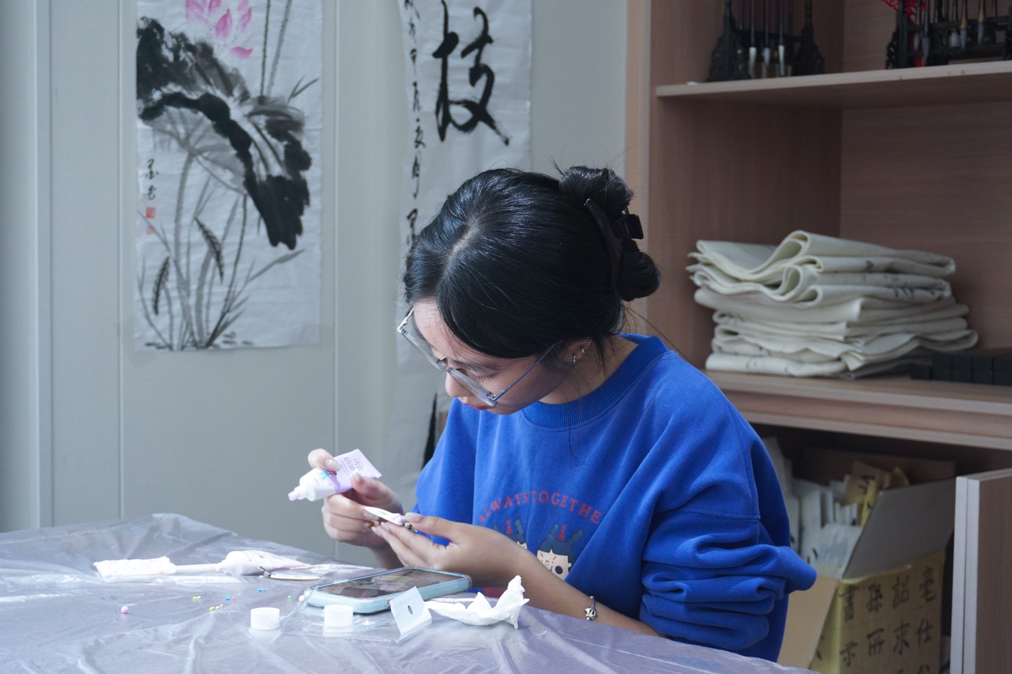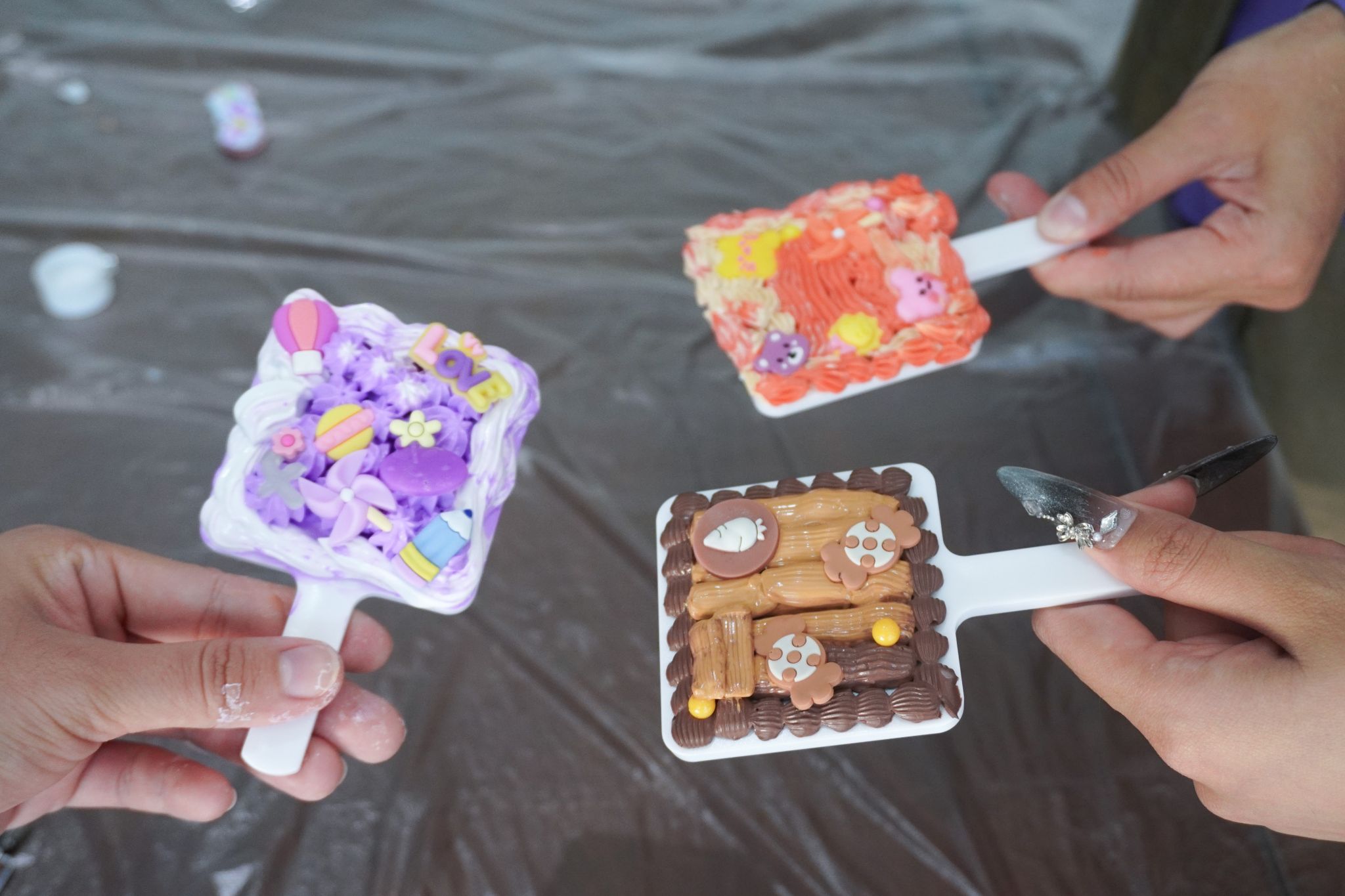 温柔藏在软萌的创作肌理里,奶油胶的绵糯是季节揉碎的糖霜,小配饰的错落是创意铺就的星点——当这些甜系素材遇上素净镜柄,同学们便在亲手创作中开启了“把温柔握在掌心”的趣味时刻。