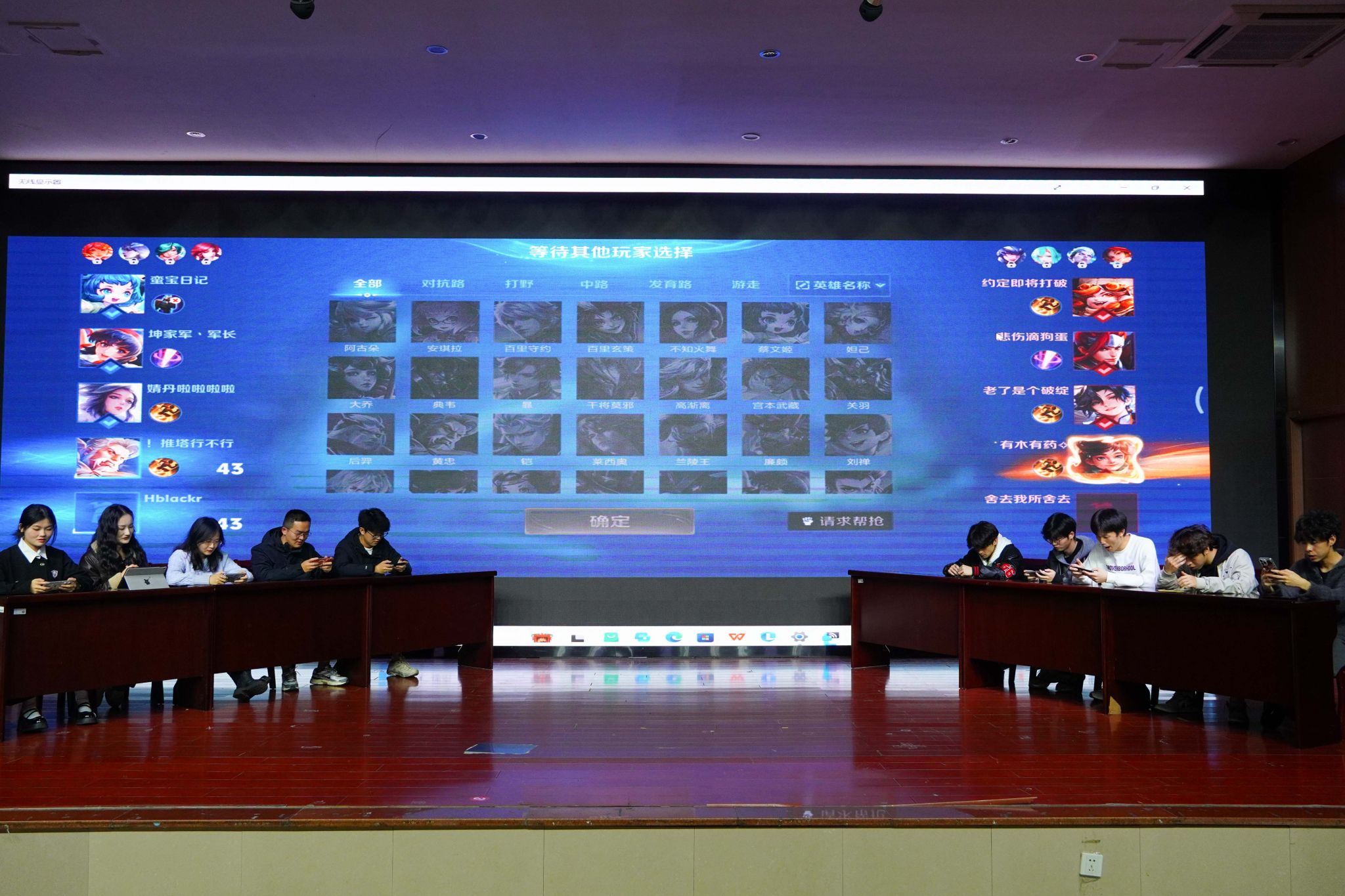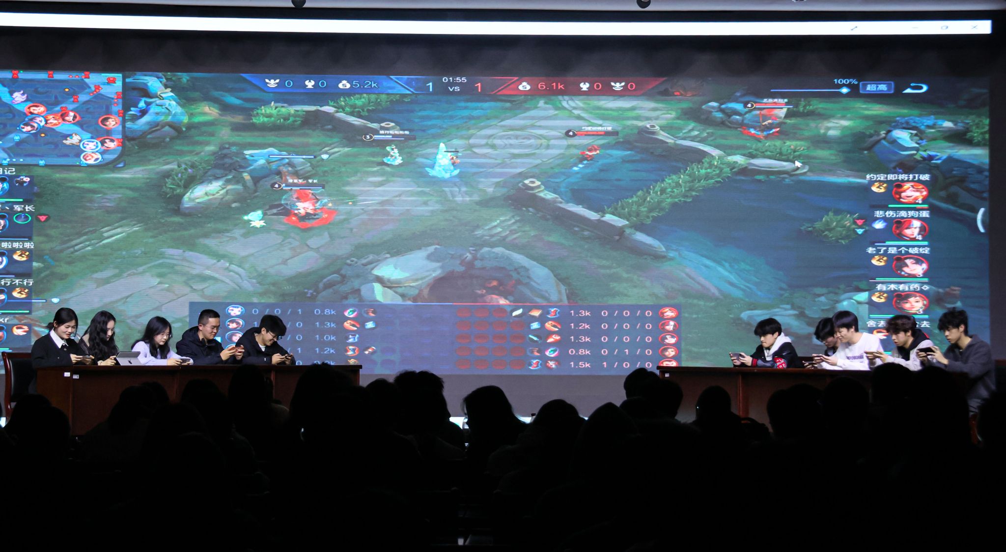大屏上《王者荣耀》的对战画面实时同步,红蓝双方的操作在赛场灯光下格外鲜活。
