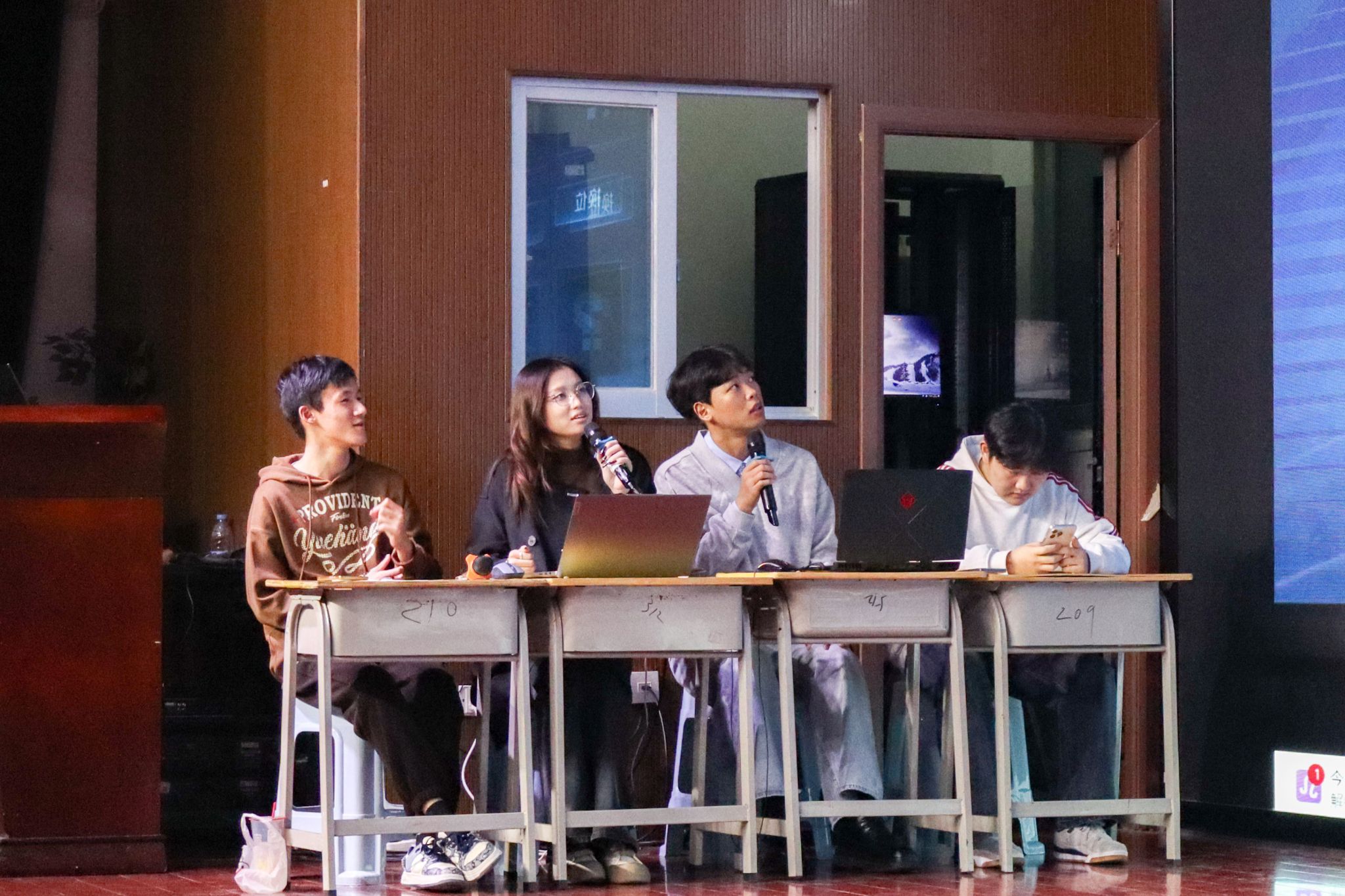 在赛场决出最终荣誉后,选手们转战礼堂,刚获得冠军的花心超人队与老师战队开启了友谊赛,让现场氛围瞬间再掀高潮。