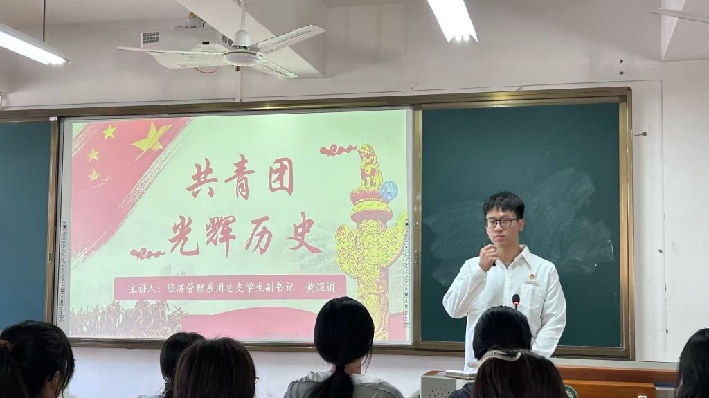 团课培训第二讲由蔡炟森、黄煜逍同学主讲,他们详细介绍了共青团的光辉历程,展示了百年发展中的重要节点。此次培训旨在向入团积极分子传达共青团的使命与责任,加强其思想建设,巩固党团基本知识,深化对“学党史、忆初心、跟党走”重要性的认识。