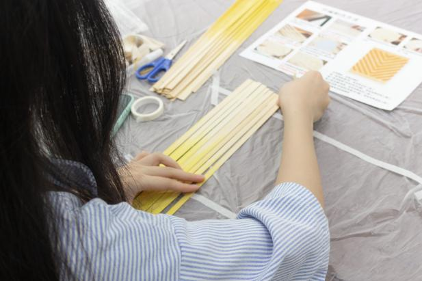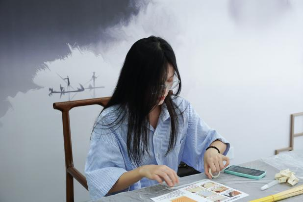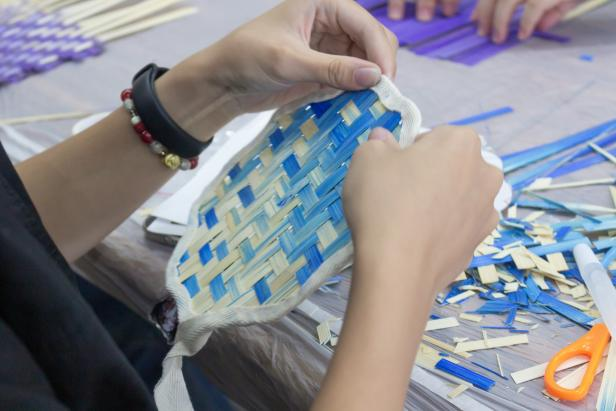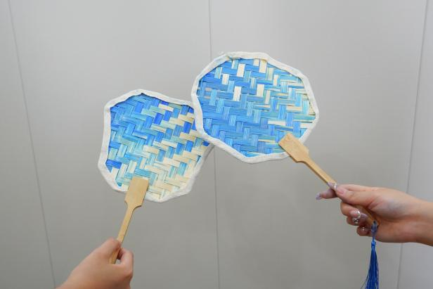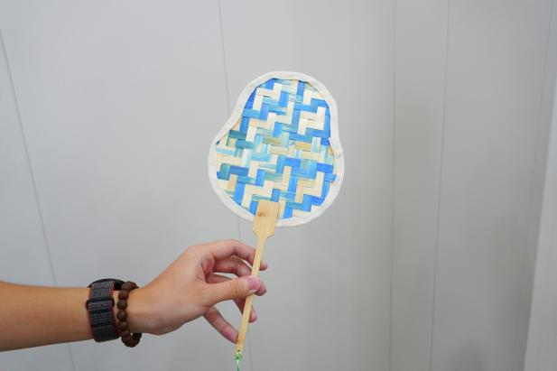 工作人员首先为大家讲解了竹编的历史与文化,并逐步演示了编织的基本技巧。起初,柔韧的竹篾在指尖“调皮”舞动,但在工作人员耐心地指导与帮助下,大家逐渐掌握要领,经纬交错的扇面慢慢成型。竹篾摩擦的沙沙声成了绝对的主角,应和着指尖的舞蹈。