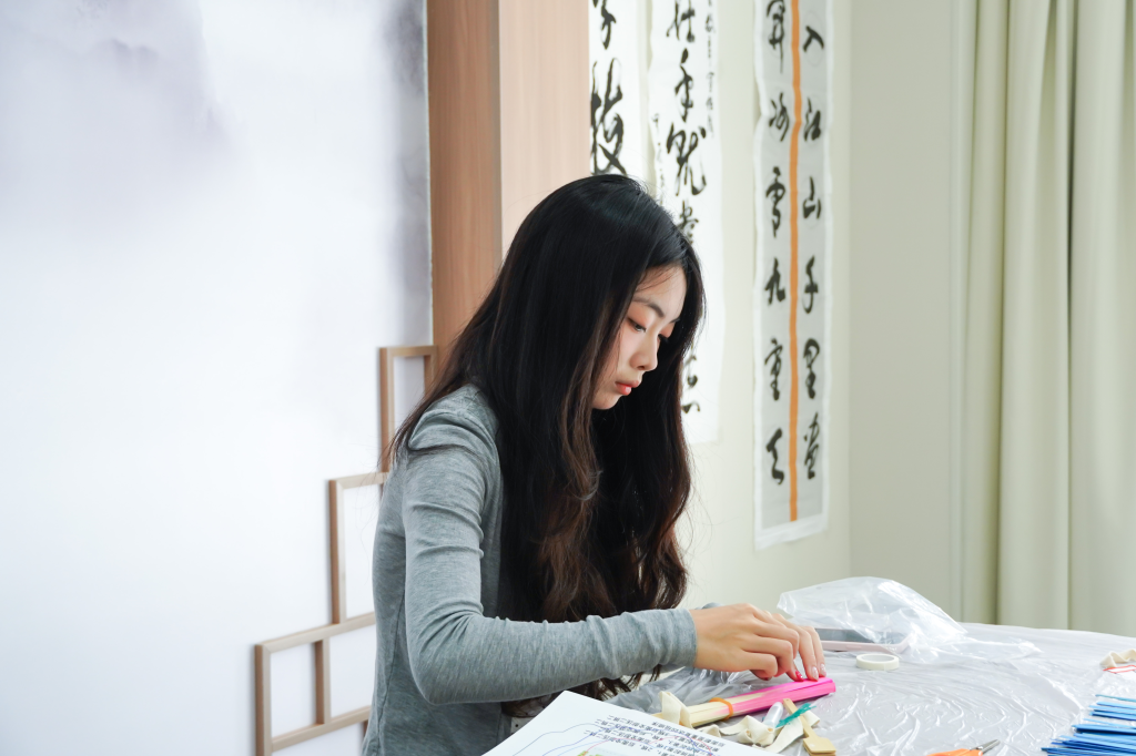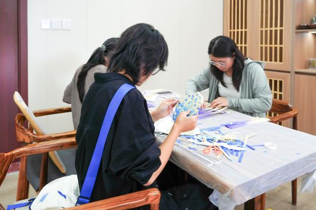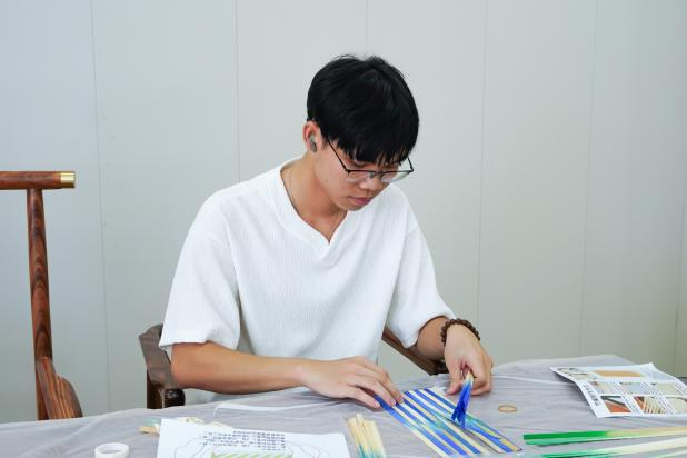 经过几小时的精心制作,一把把饱含心血的竹编扇陆续完成。同学们的作品虽略显青涩,却各具特色,充满手作温度。大家兴奋地展示着自己的成果,并与身边同学交流制作心得。工作人员记录下这些美好瞬间和一件件凝结心血的作品。活动落幕,余韵悠长。同学们纷纷表示,此次与竹编的深度对话,不仅让他们对竹编这项非遗技艺有了更加具象化的理解,也在他们心中播下热爱的种子。