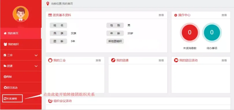 (4)进入团组织关系转接界面