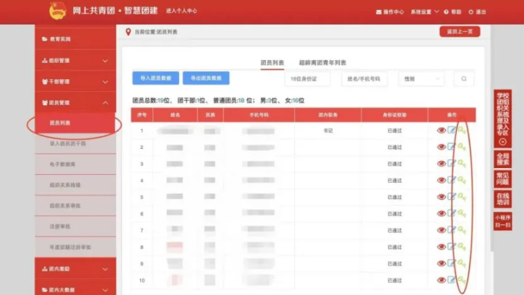 答:*姓名、身份证信息录入错误不可修改,只能通过组织管理员将情况汇总提交至上级团的领导机关(团省委、团市委、团县委)删除后,由组织重新录入