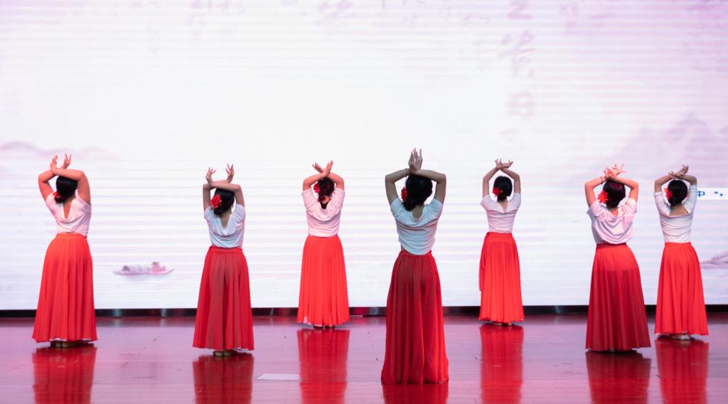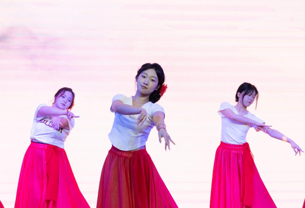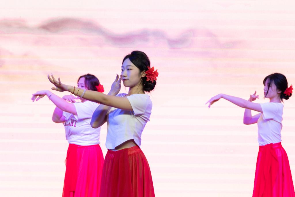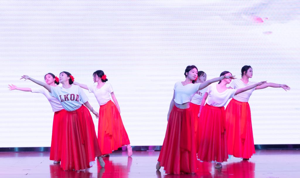 比赛的最后,女孩们身着红裙出场,轻灵的舞步曼妙,蹁跹的舞裙落下,观众沉浸在如梦般轻盈的舞蹈。
