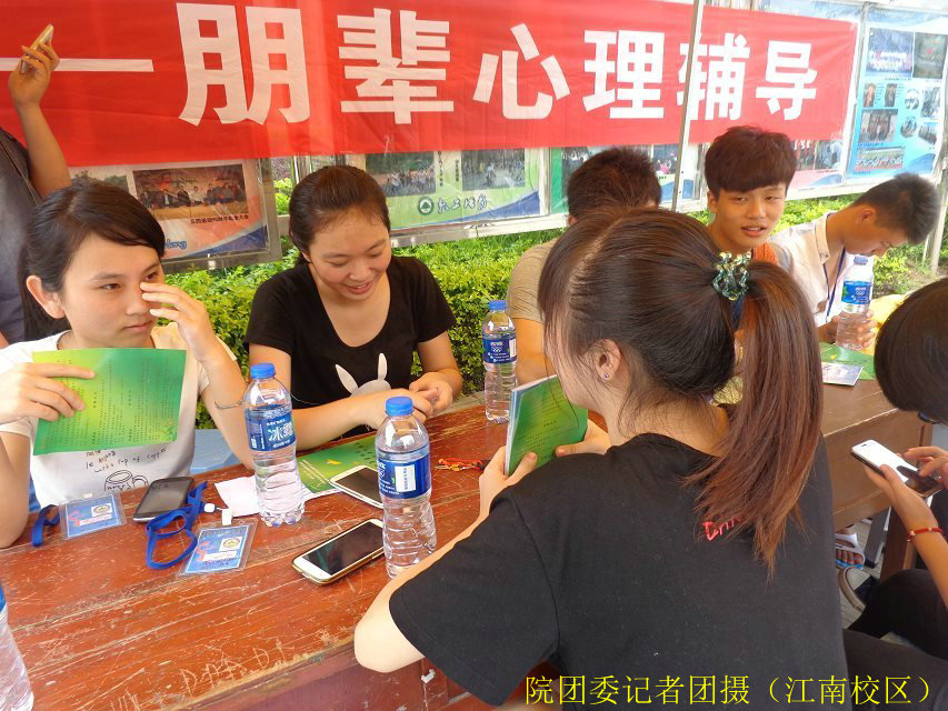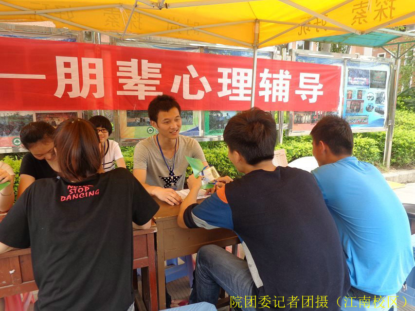 2014年5月24日下午三点至五点,由院团委、院学生处心理咨询中心主办,院社团部心连心协会承办的首届“大学生朋辈心理咨询驿站”在我院江南校区3-4#、5#学生公寓楼前举行,给大家提供了一次现场心理咨询机会。