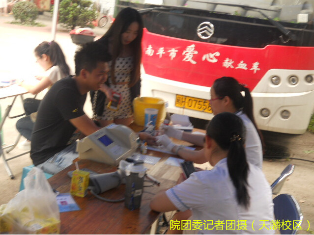 2014年5月27日上午,由我院外联部组织、南平献血站合作的第二次义务献血活动于天麟校区礼堂门口举办。