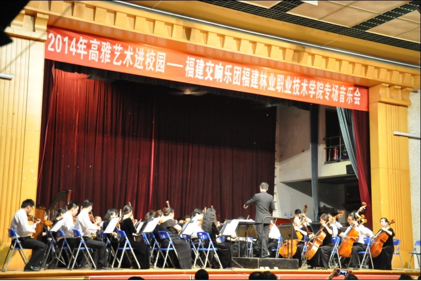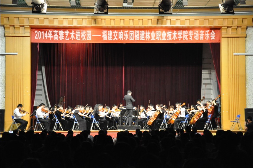 5月28日晚7:30分,由福建省教育厅、文化厅、财政厅主办的2014年高雅艺术进校园之福建林业职业技术学院专场音乐会在我院天麟校区礼堂举行。我院师生共700多人欣赏了福建交响乐团为我们带来的一场视听盛宴。