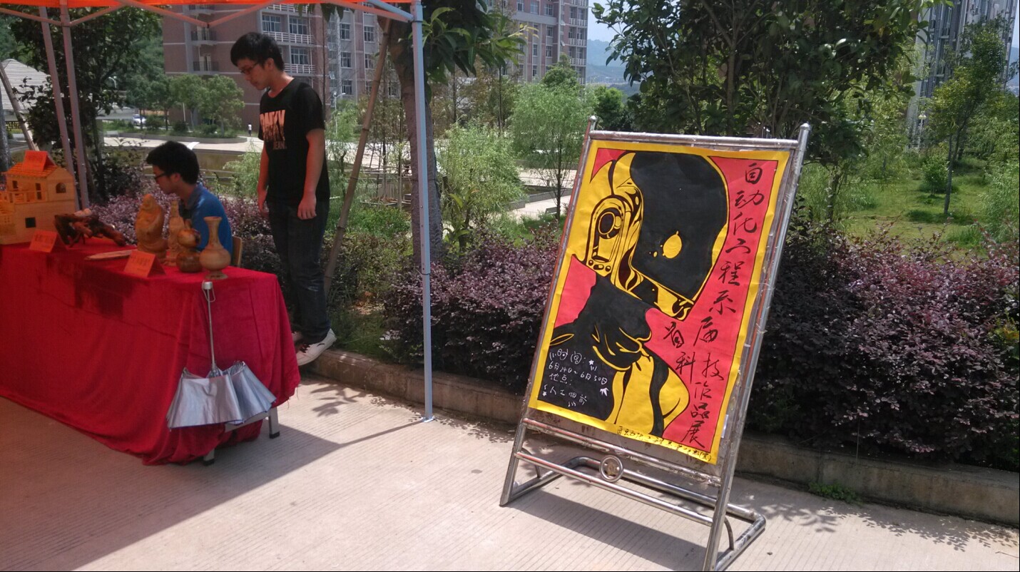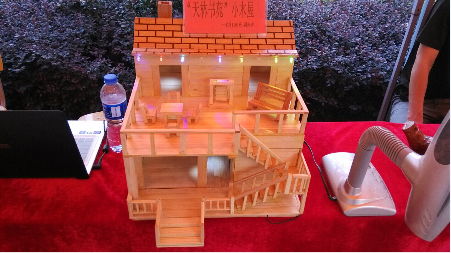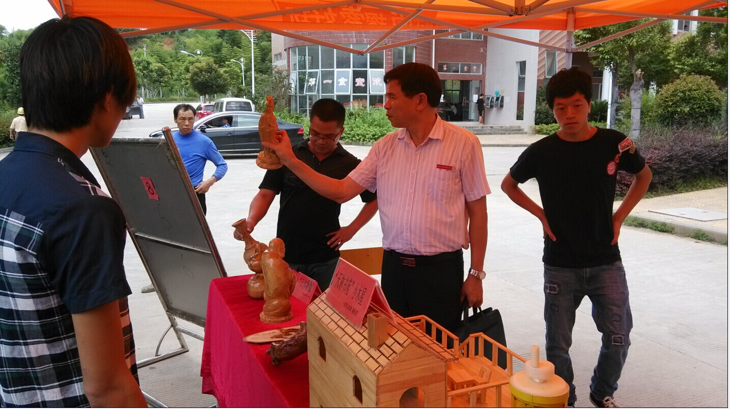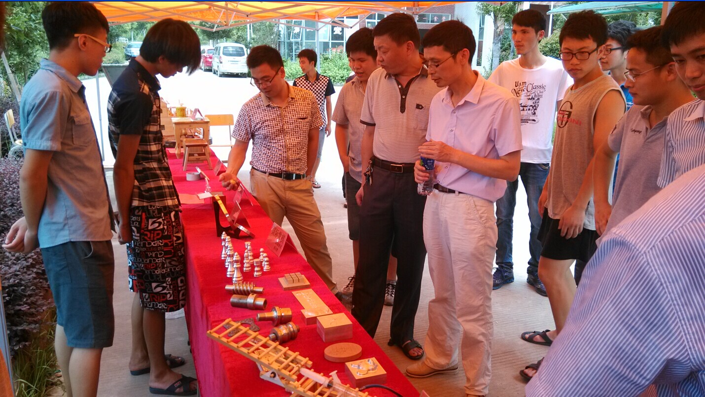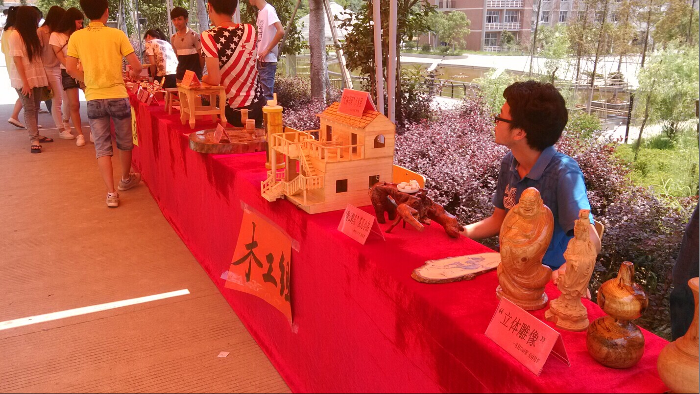 在展览中,电子作品展区的:智能车、消防车、模拟交通灯、篮球计分器、光立方等作品;机械作品展区的:龙凤呈祥、校徽、国际象棋、竹报平安等作品;木材加工作品:“如鱼得水圆通茶盘”、佛、观音立体雕像、“天林书苑”小木屋等作品引来了特别多的围观师生,指导老师跟制作者们耐心的跟前来参观的师生讲解着每一个作品的设计制作原理、工艺等步骤,让前来参观的师生全面了解我系各专业学习内容。