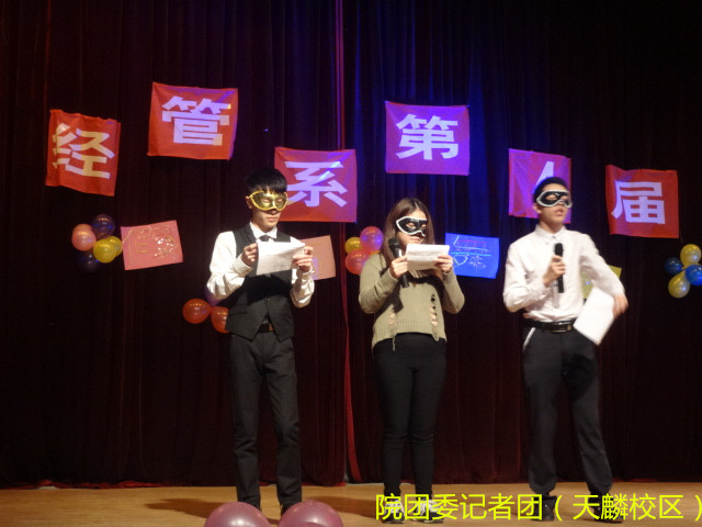 为推进校园文化活动的蓬勃发展,丰富校园文化,促进同学间的交流,11月11日晚7点半由经济管理系团总支主办,系纪检部承办,经管系宿管部协办的第四届假面舞会活动在院天麟礼堂隆重举行,参加活动的对象为经管系持有假面舞会门票的同学,门票400张。