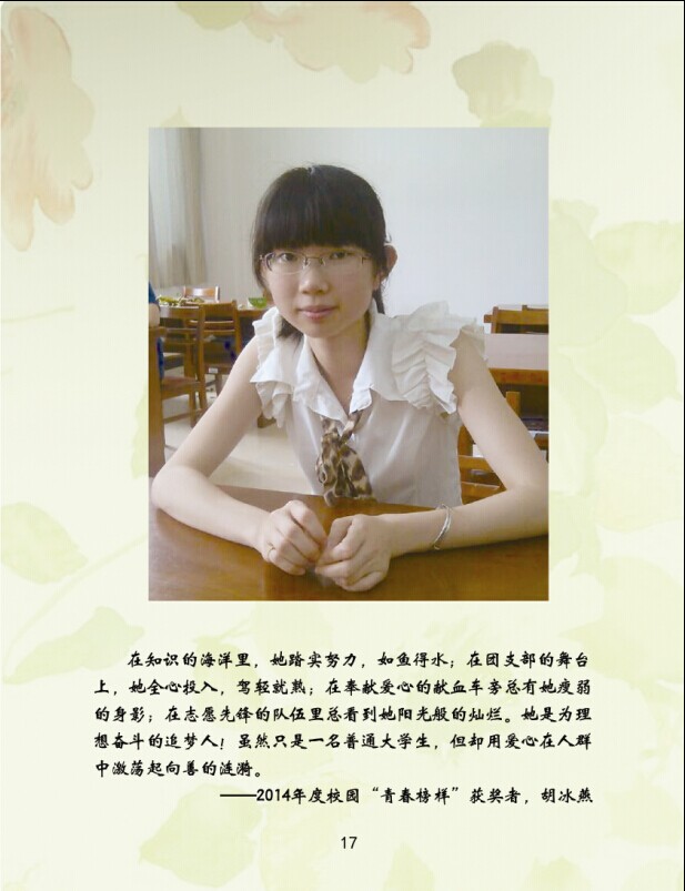 目前,2014校园青春榜样宣传册《我的中国梦——奋斗的青春最美丽》已陆续发放到各处、室、系和各团支部,2014校园青春榜样事迹报告会也将在近期在各系间开展。