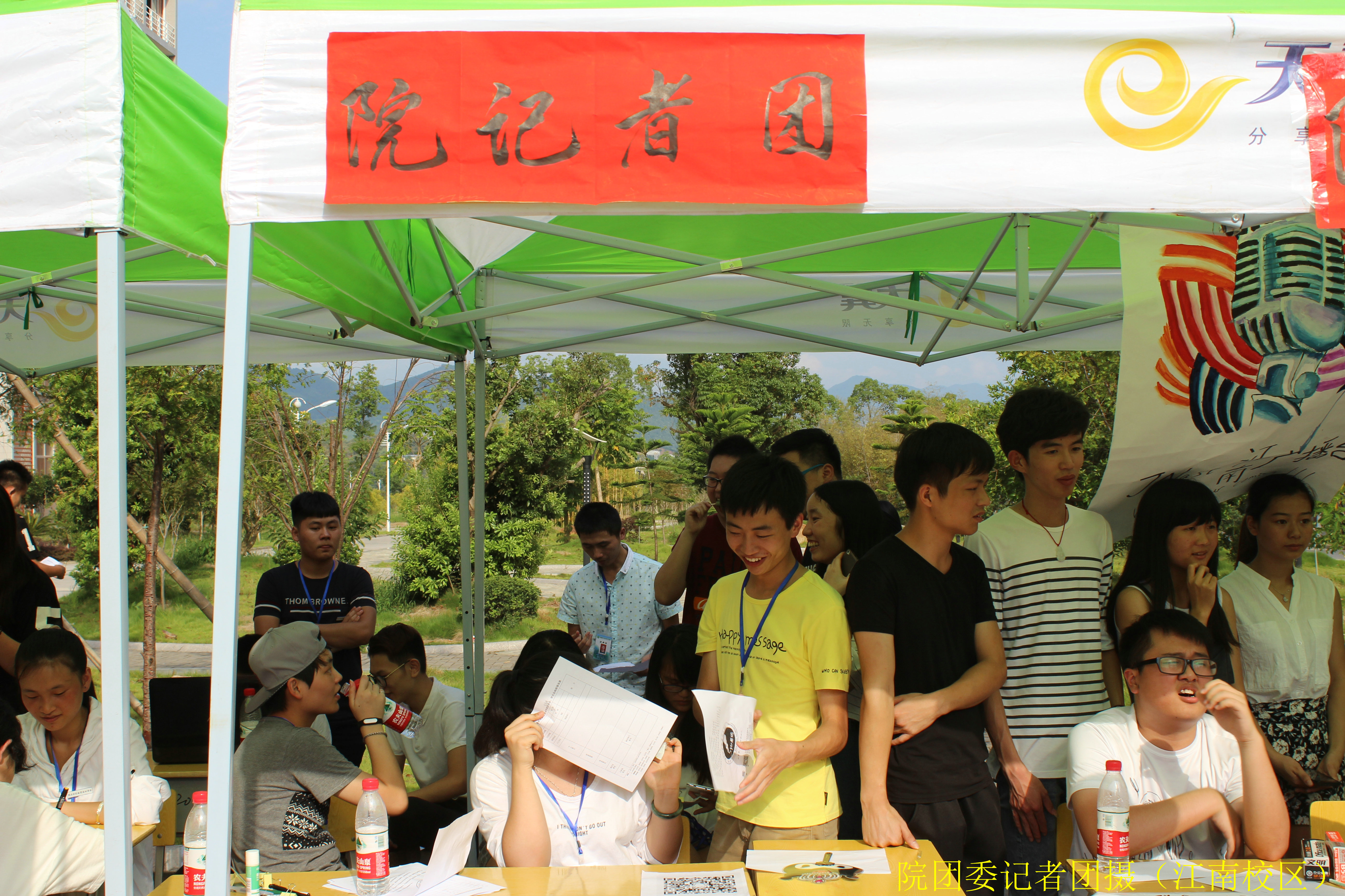 9月15日下午2点30分,烈日炎炎。我院在江南校区、天麟校区同时举行了两委会及各系学生分会面对2015级新生的纳新活动。再大的太阳,也抵挡不了学长学姐招贤纳士的热情,各部门对于纳新工作都安排得仅仅有序,自信满满,在这眼光明媚的好天气里两委会及各系学生分会纳新工作正式开始。以此给15级新生提供一个展示自我的实力的平台,发挥个人专长,充实我院两委会的力量。