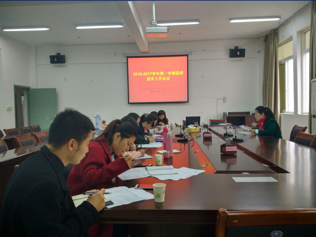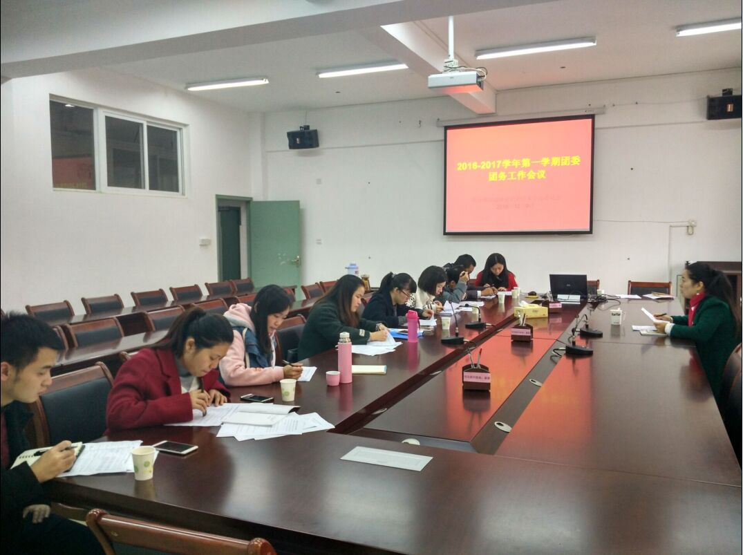 12月9日上午,院团委在江南校区实训二5楼会议室召开2016-2017学年第一学期团务工作会议,各系团总支负责人、院团委全体成员参加了会议。会议由团委副书记李霞主持。