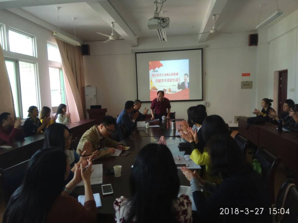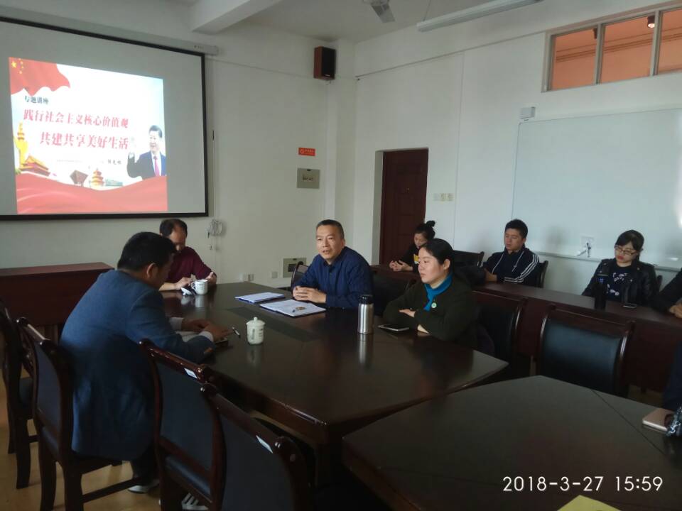 3月27日下午15:00,院党委工作部部长郭先根应艺术设计系邀请,在天麟校区综合教学楼704室为艺术设计系全体教职员工带来了一场“践行社会主义核心价值观,共建共享美好生活”的专题讲座。本次讲座由艺术设计系党总支书记、主任成榕主持。