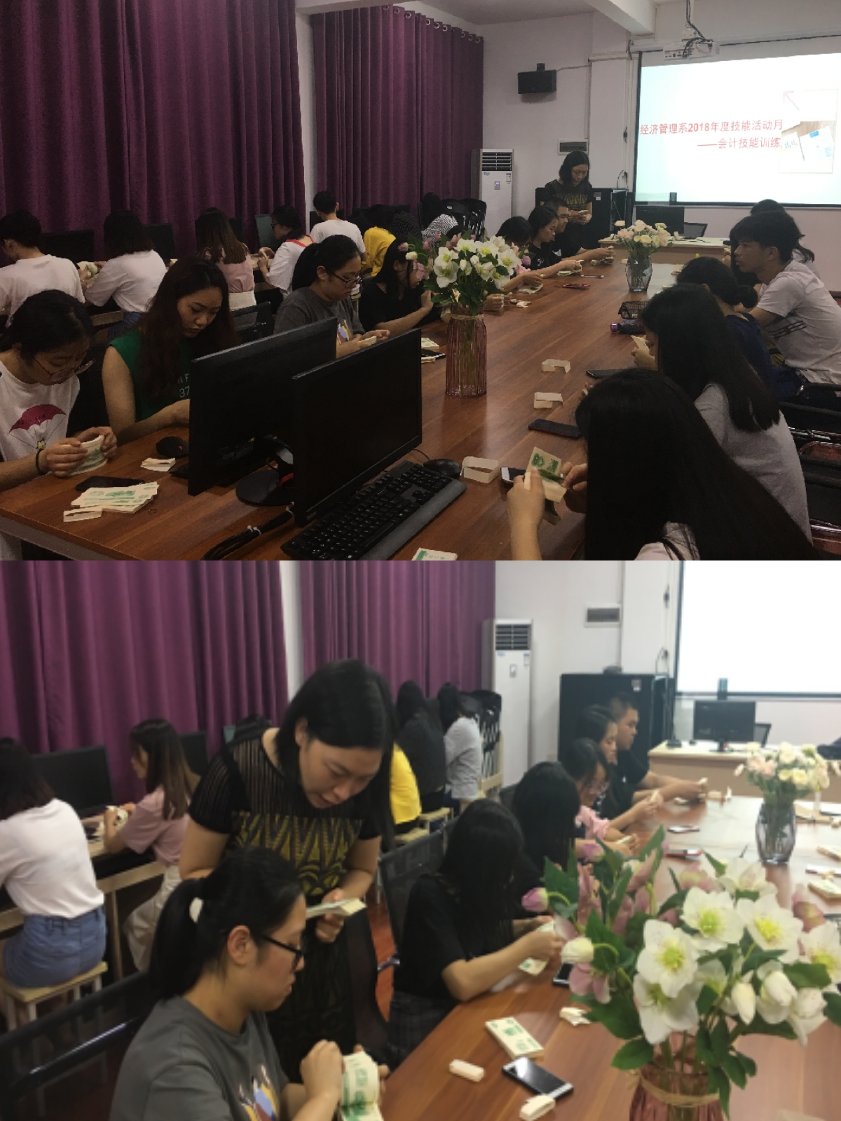 5月22日至24日,由王冰、黄继红两位专业老师指导的会计技能项目组就比赛内容对参赛选手进行了专业技能培训,参赛选手积极投入,专注技能掌握。