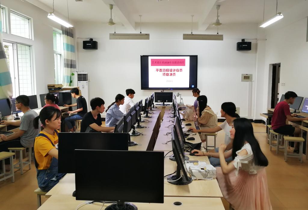 2018年6月4日,在综合楼607协同创新中心实训室进行了一场别开生面的技能竞赛,作为艺术设计系2018年技能活动月系列活动之一,此次平面海报设计项目经过为期一个多月的初赛选拔,最终来自广告设计与制作专业的30名同学突出重围,参加本项目决赛。
