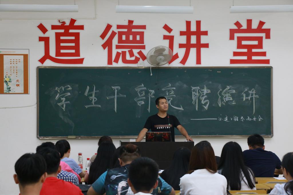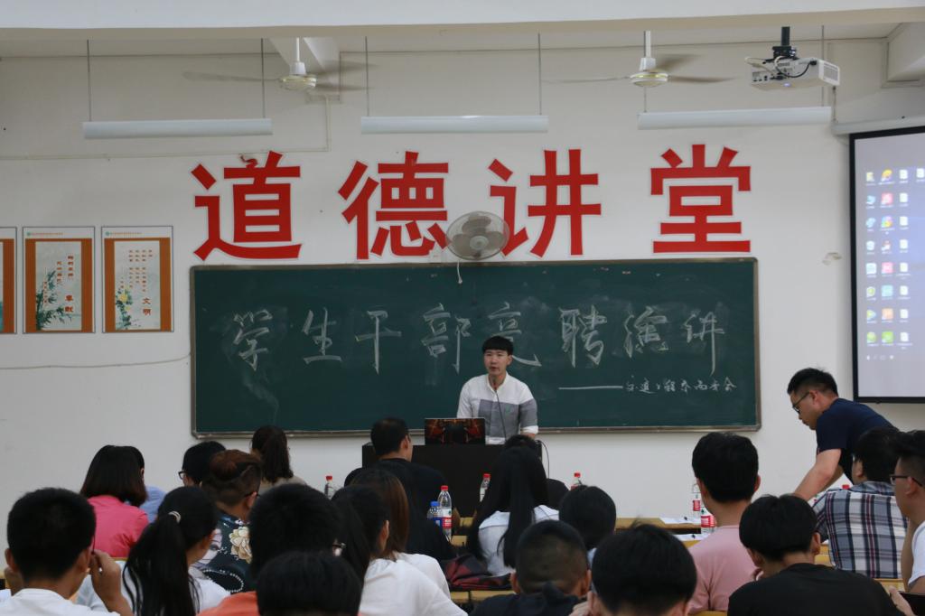 为了让学生提高沟通能力、提升自信心、发觉性格优势、自信大胆演说、“张嘴就来”、培养领袖气质,在竞聘中脱颖而出,我系两委会于2018年6月14日下午3:30在实训室210举行学生干部竞聘演讲。系学生科长杨峰老师及全体专兼职辅导员老师、大二干部与大一干事参加了此次演讲。