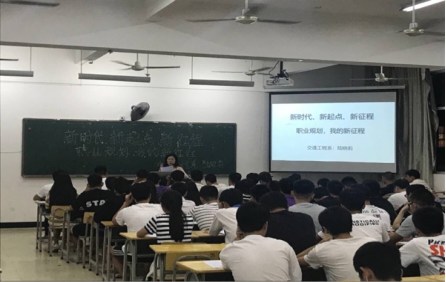 为积极推进习近平新时代中国特色社会主义思想和党的十九大精神“三进”工作,贯彻落实全国全省高校思想政治工作会议精神,切实加强大学生思想政治教育工作,培养有理想有本领有担当啊的时代新人。2018年10月9日,交通工程系组织2016、2017、2018三个年段班级学生在实训四相继开展了“新时代、新起点、新征程”主题班会。