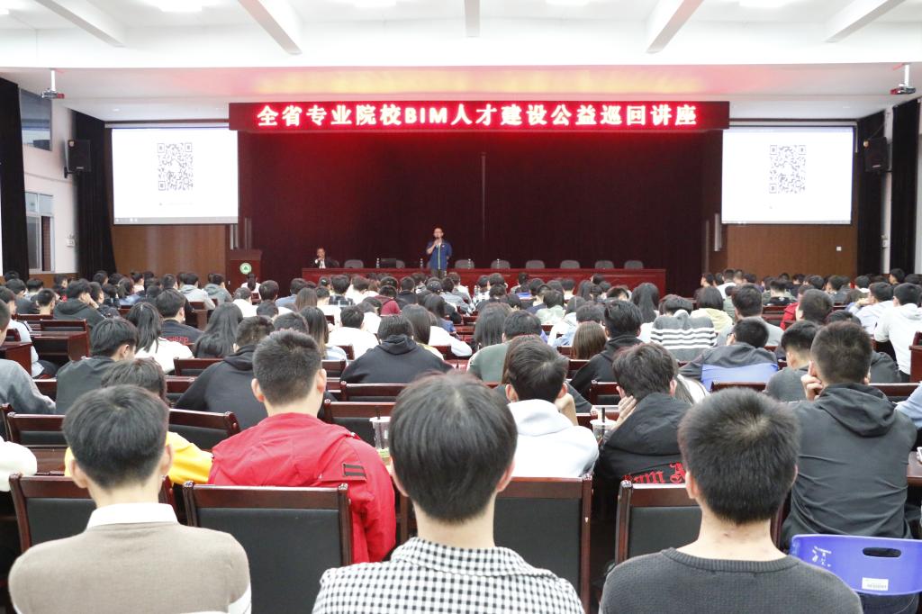 10月30日晚19:00,全省专业院校BIM人才建设公益巡回讲座在学院大礼堂举行,为不断推进BIM技术的交流与合作,晨曦信息科技股份有限公司培训部总监池锦杰为我系开展本次讲座,此次讲座以《专业院校BIM人才孵化与择业良机》为主题为我系同学讲解。参与此次讲座的有培训部总监池锦杰、孙华主任、宋晓东副主任、造价教研室全体老师及大二大三的学生。