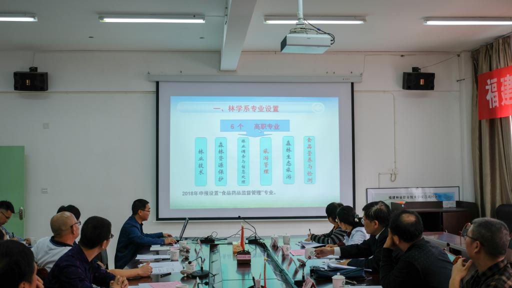 本次论证会议由叶世森副院长主持,出席本次论证会的专家有福建师范大学李宝银教授、省森林资源管理总站洪端芳站长、福建林业局人事处郑丽婵副处长、省森林资源管理总站齐清琳副站长、林业职业技术学院万泉院长、副院长严绍裕、省林业规划院的施恭明副总工、陈铭潮主任、三明林业学校范繁荣博士、福建省生态工程学校聂荣晶高级讲师副校长以及南平市、三明市、龙岩市三地(市)森林资源管理站的叶小瑜站长、詹国明站长、邱文金站长、林学系主任廖建国以及林学系林业技术专业专任教师。