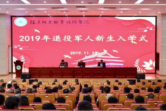 11月24日,福建林业职业技术学院2019级退役军人新生开学典礼在图书馆礼堂举行,院党委书记万泉,党委副书记、院长刘文开,副院长严绍裕出席了仪式。仪式由副院长严绍裕主持,退伍军人开学典礼在军旅歌曲《当兵的人》中拉开了序幕。