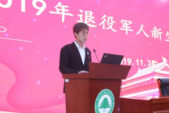 退伍军人新生代表万智伟表示,十分感谢党和政府及学校给予退伍军人深造的机会,表示要忠诚于党,不忘初心、牢记使命,继续奋斗;一定珍惜机会,努力学好专业知识,把部队的良好作风带到学习中来,学好知识,学会做事,学会做人,恪守“敬业、吃苦、务实、进取”的天麟精神,秉承“明思笃行、业精德厚”校训,锤炼新时代工匠精神,做个对社会对祖国有用的时代新人。