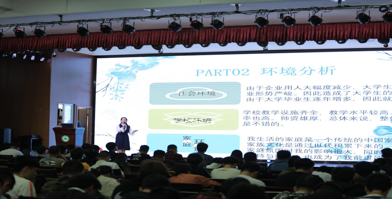 大赛以“规划职业人生,打造锦绣前程”为主题,历经组织宣传、系部选拔、校赛评审三个阶段,最终9名选手进入决赛。决赛共分为选手阐述、提问两个环节。选手们结合自身实际,通过霍兰德人格类型测试、MBTI性格职业测试及SWOT分析等方式,进行全面客观的自我认知;从环境分析找准职业定位并及时做出评估调整,阐述各阶段的目标和实现路径。