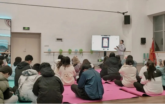 首先社团指导老师乐丽燕分享了她与瑜伽的故事,让大家充分认识和理解练习瑜伽对学生们身心的好处。其次乐老师为学生们连线了江西莲庐瑜伽研究院,其研究院院长助理Jenny老师为学生们分享了瑜伽的起源与内涵、瑜伽的主要流派、瑜伽的主要练习方法等方面帮助学生们建立对瑜伽的正确认知,并引用相关数据和真实案例分享了瑜伽对当代大学生的身心健康改善有积极的作用:例如改善体态;脊柱侧弯,含胸驼背;改善睡眠质量以及心理方面情绪波动起伏过大的情况。