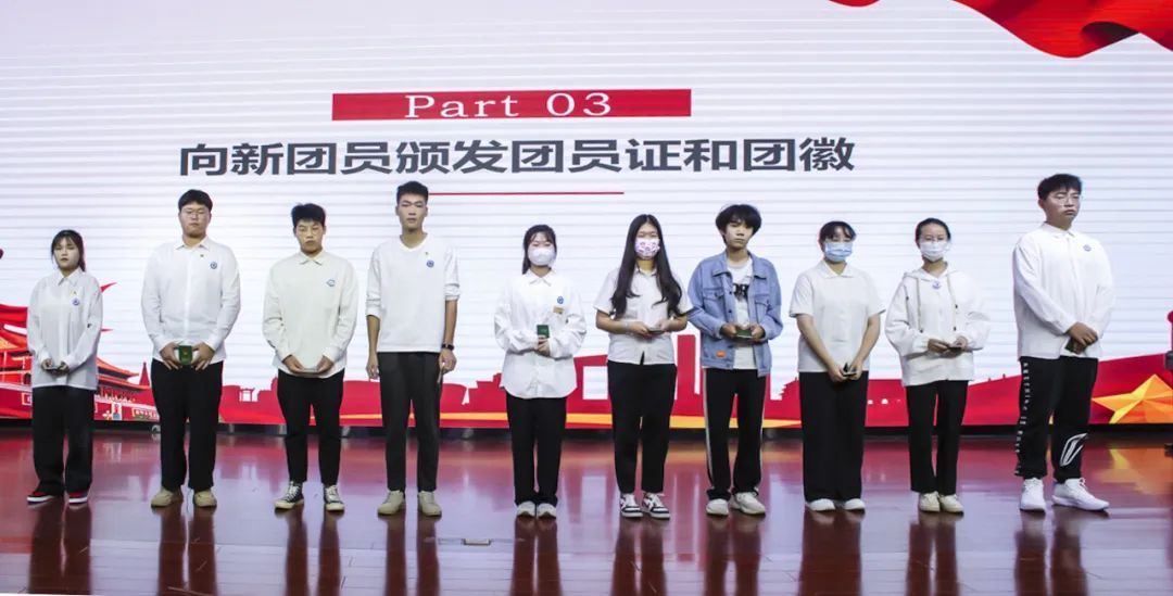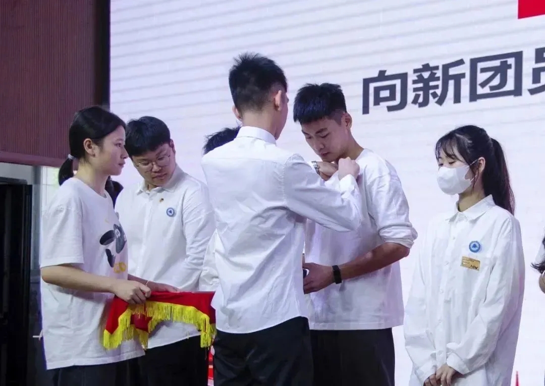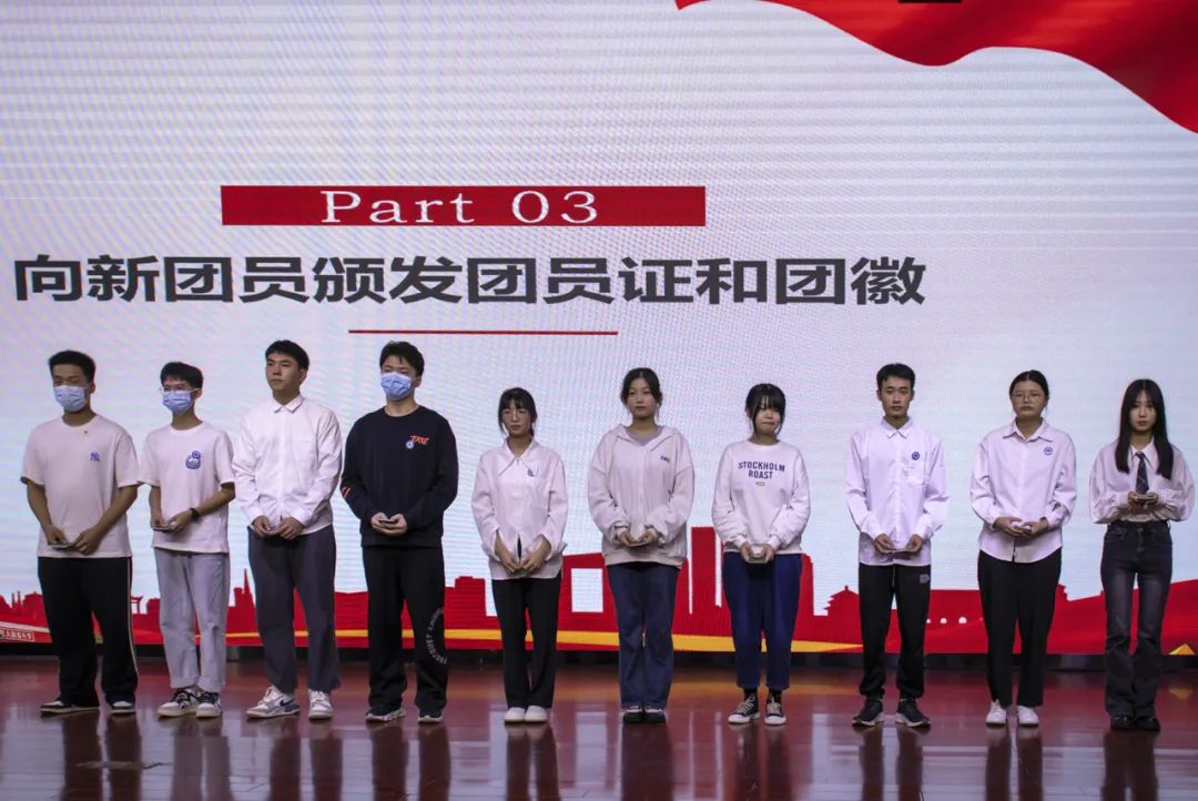 由各系团总支学生副书记向新团员颁发团员证和团徽。