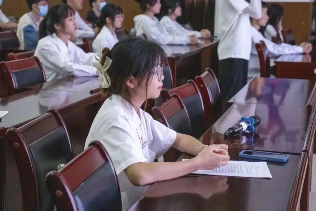 院团委学生副书记董婕同学作为老团员代表发言,她希望新团员们能够谨记入团誓词,切实履行团员权利和义务,时刻以团员标准严格要求自己,努力成为一名优秀的共青团员。并提出以下三点要求:一、不断继承和发扬中华民族的优良传统,努力培养时代责任意识和家国情怀。二、珍惜大学时光,勤奋学习,努力提高自身综合能力与专业知识素养。三、诚信做人,自强不息,努力加强自身道德修养。