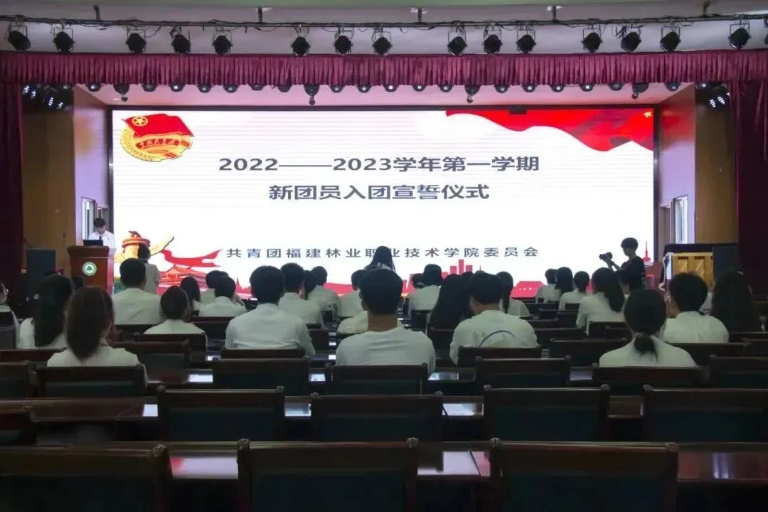 为深入学习宣传贯彻党的二十大精神,庆祝中国共青团成立100周年,进一步深化我院青年学子思想政治引领,充实我院共青团队伍,为团组织灌注新鲜血液,筑牢团员队伍的先进性,增强青年团员的荣誉感。共青团福建林业职业技术学院委员会于2022年11月29日在江南校区礼堂举办2022-2023学年第一学期新发展团员入团宣誓仪式。