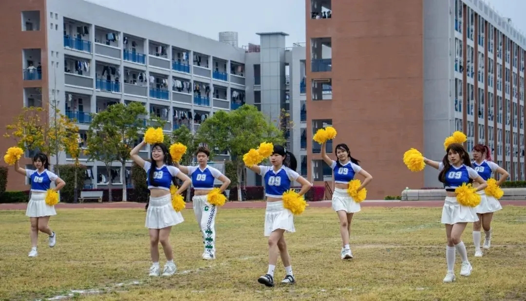 比赛中场休息时还有变身“足球宝贝”的艺术团啦啦队的同学们,她们用精彩的舞蹈为双方球队加油!